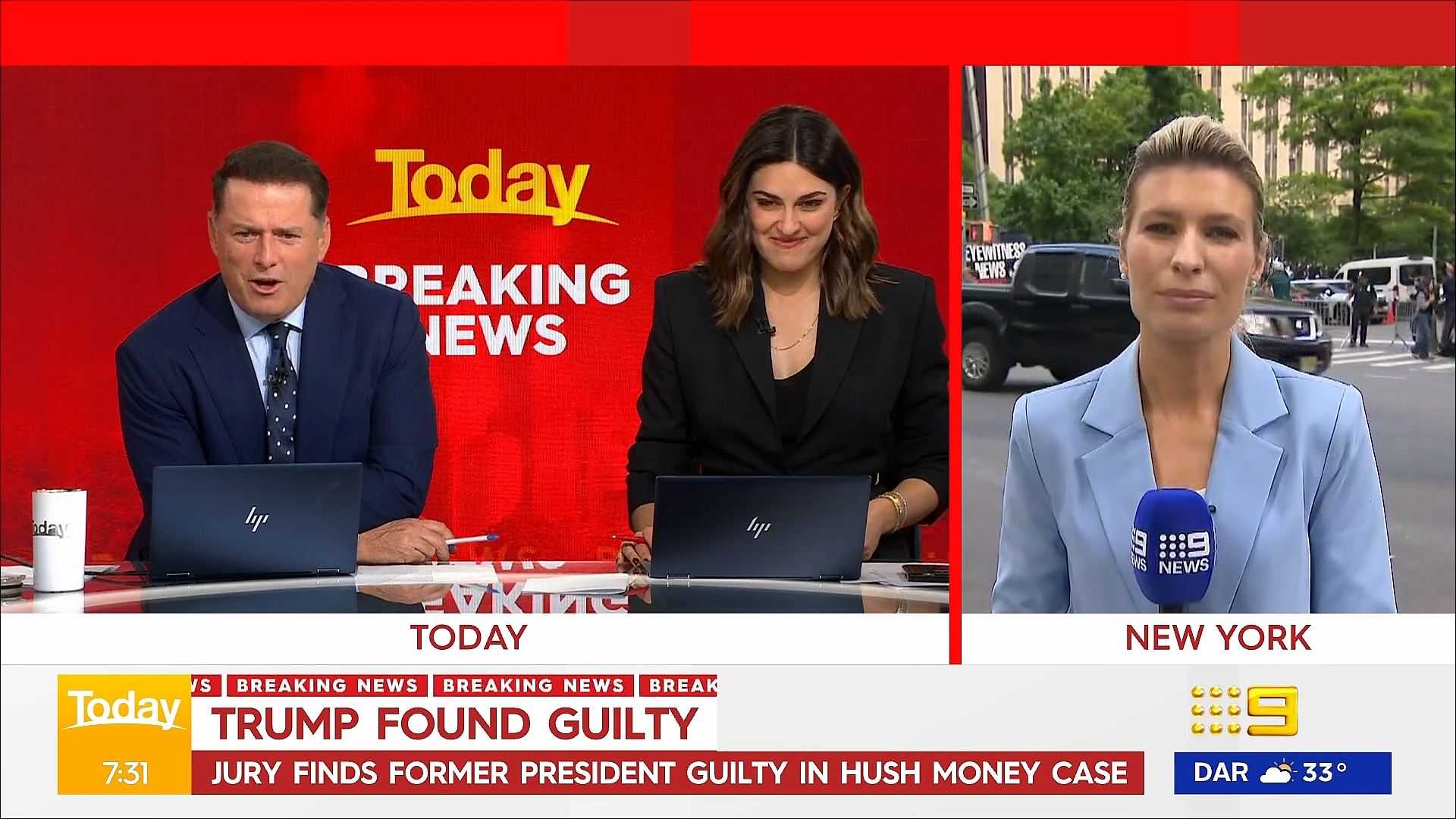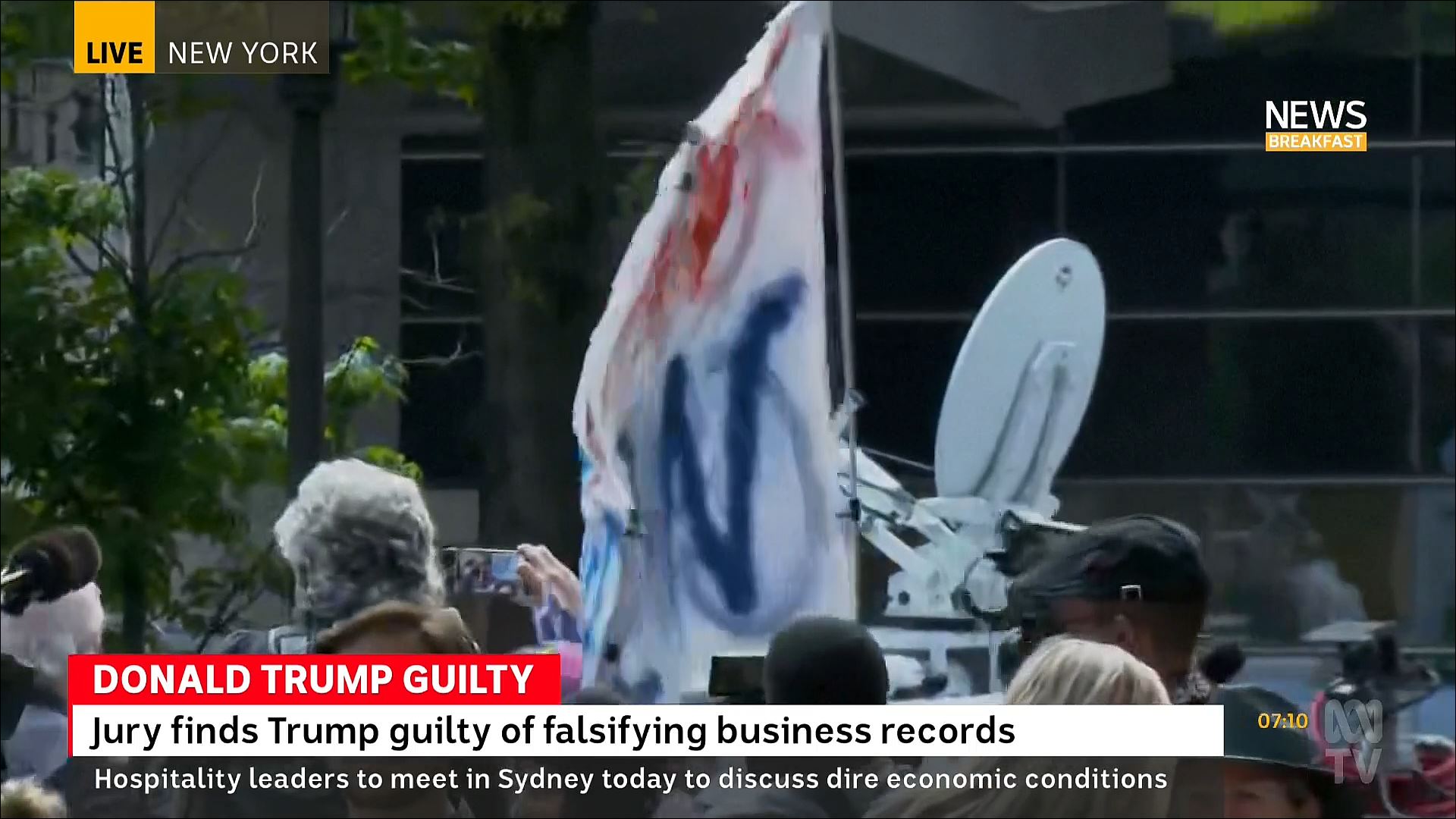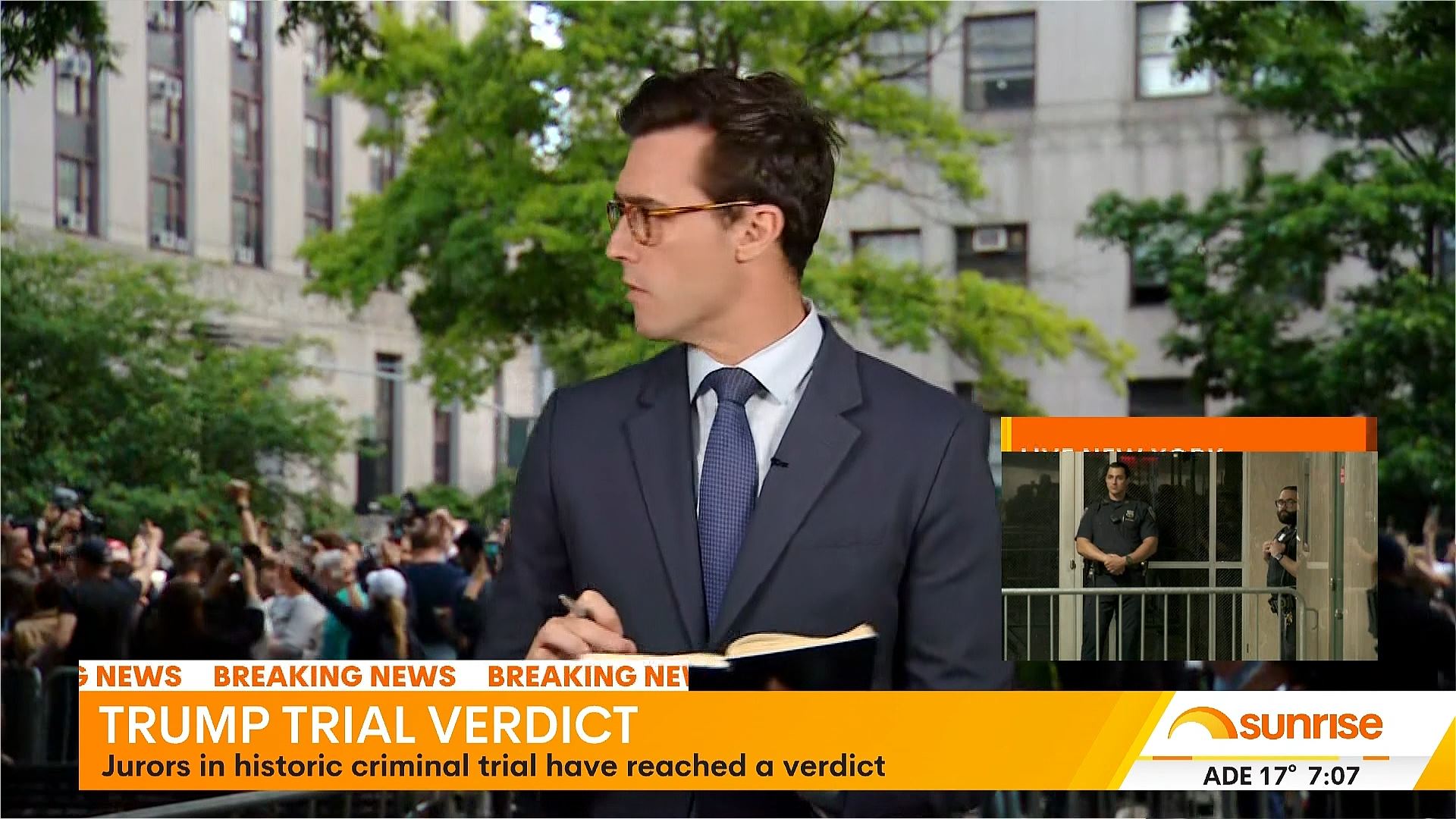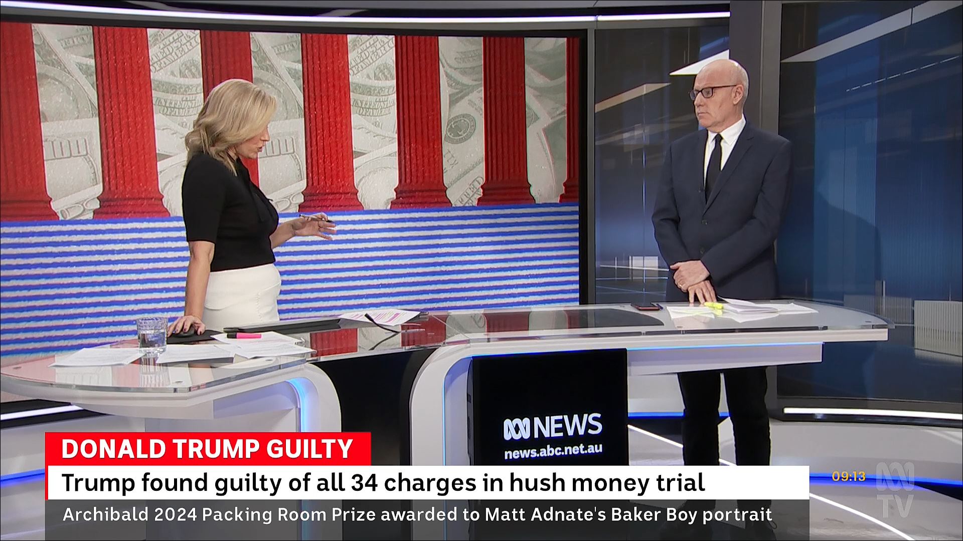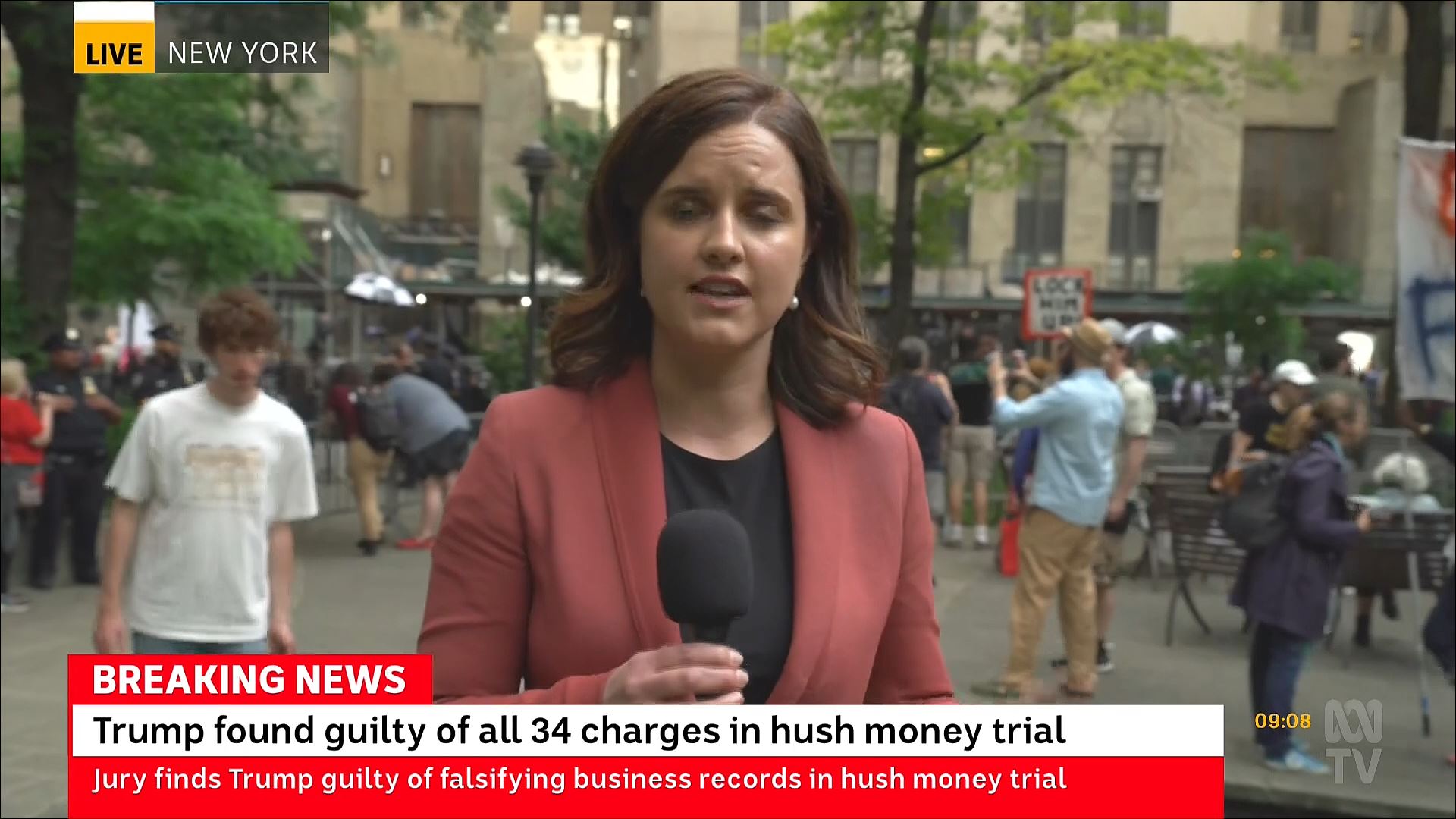 ABC’s 7pm bulletin tonight dedicated the first 11 minutes to the coverage of Trump found guilty, including brief discussion between reporters Jade Macmillan in New York City and Barbara Miller in the Washington bureau.