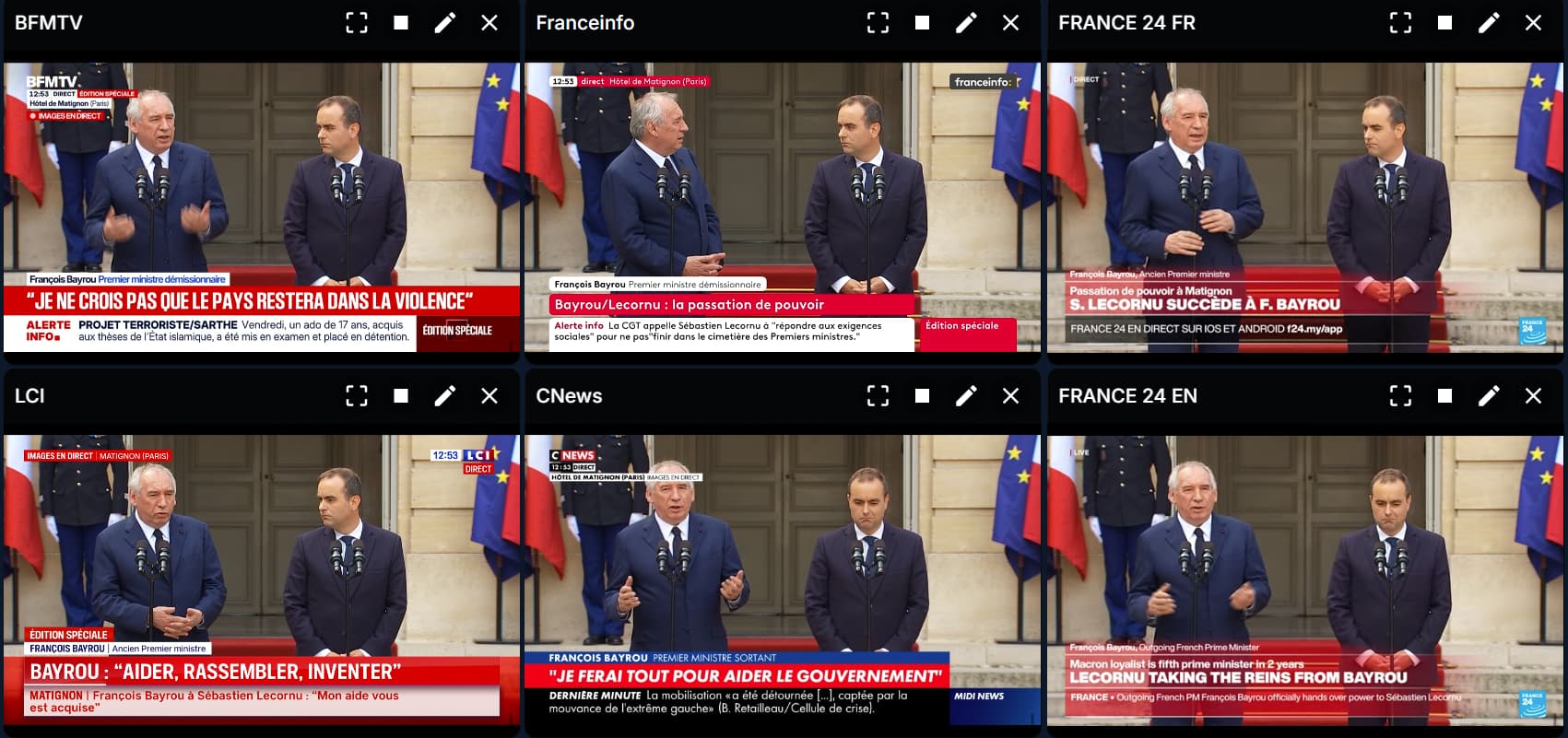 About 9am/5pm is when everything goes out the window. Only Franceinfo is willing to mix in some other stories in its coverage.