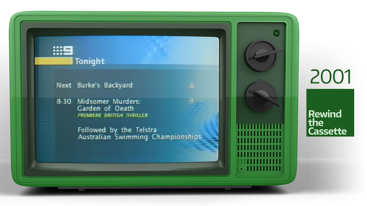 It was noted back in 2009 how Nine kinda copied Seven’s slant with its big white bar in the original Welcome Home look. God that whole era was hideous and it still lasted four times as long as the superior Choose Nine package.