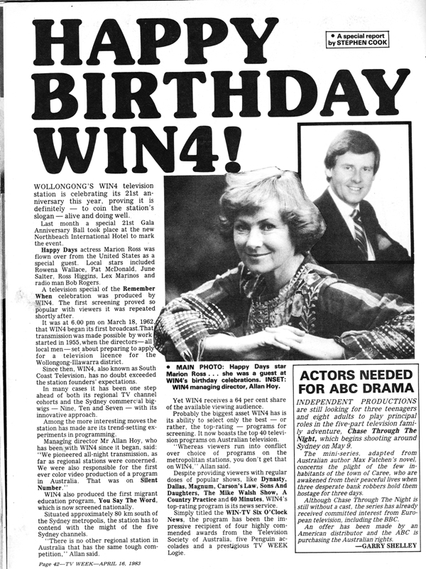Today, 18 March, is WIN Television’s 55th birthday. It was 18 March 1962 when WIN4 first launched.