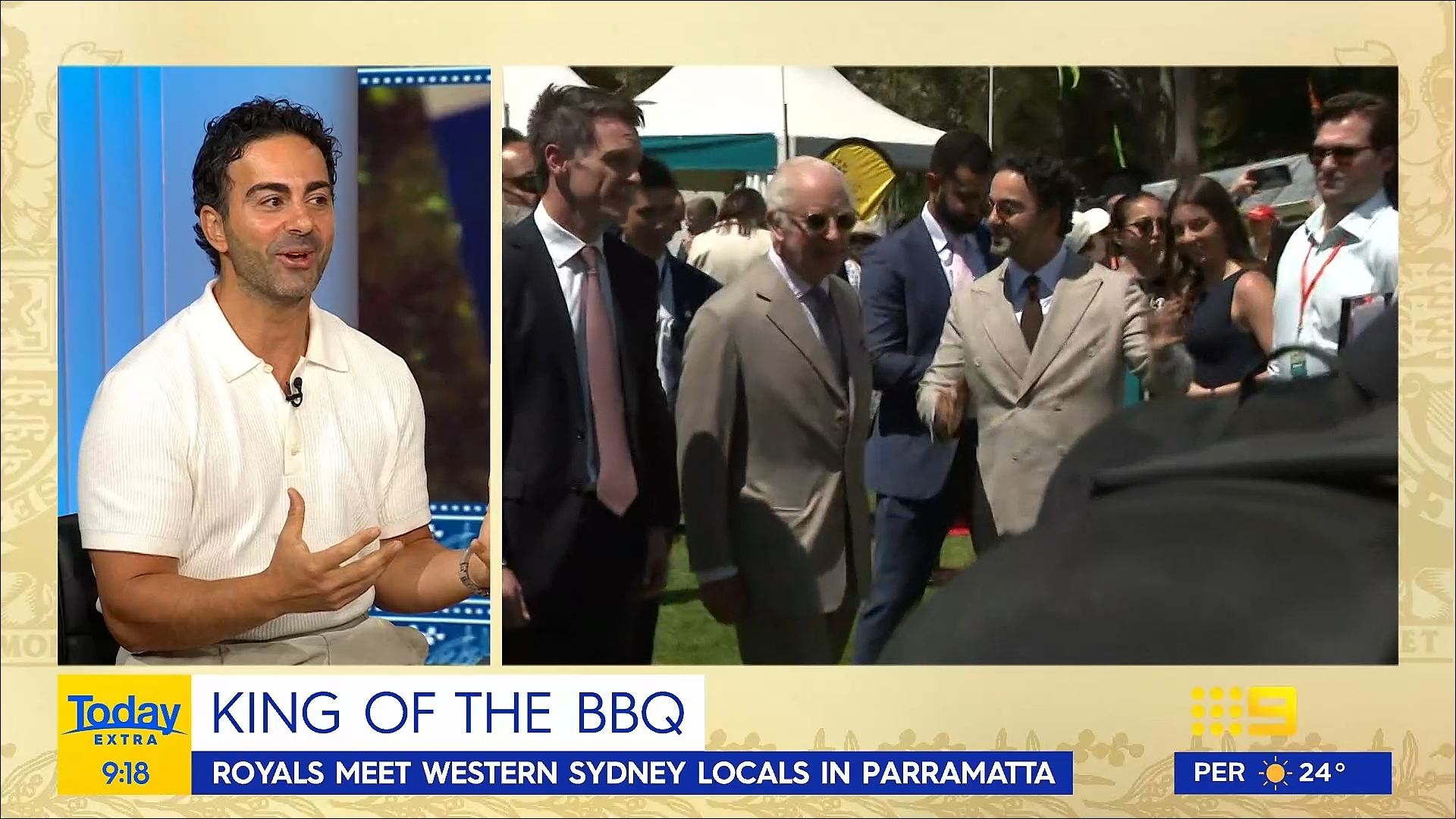Gogglebox cast member Jad Nehmetallah met King Charles in Parramatta yesterday when the Royals attended a local BBQ.