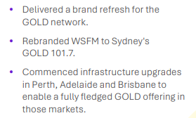 Interestingly, there are also a couple of references that allude to leaving Cruise in Adelaide as-is, due to it being on AM. That seems really strange to me. If they’re planning a DAB-only Gold station in Adelaide, why wouldn’t you leverage the AM frequency as well as the DAB station? Unless they plan to sell it of course. I would have thought an AM/DAB combo would be better than a DAB only station.