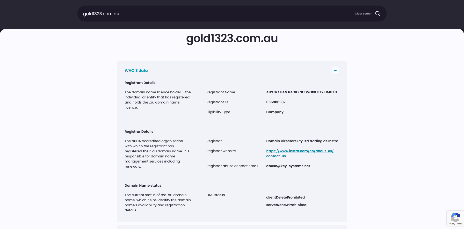 Has ARN registered the domain Gold1323.com.au yet ?