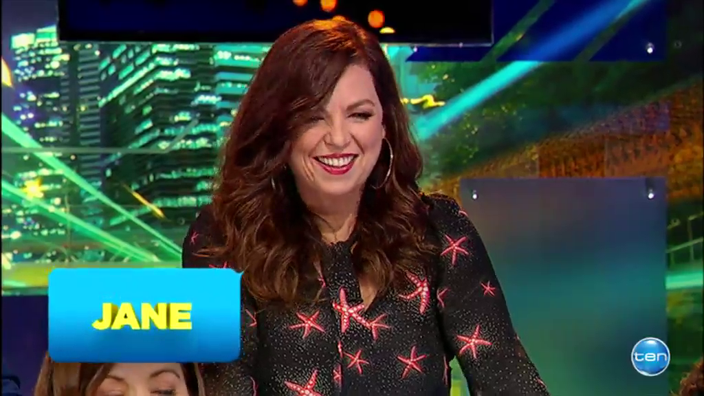 This week’s guest quizmaster is Julia Morris, who was also on The Project earlier tonight to promote Blind Date. Coincidentally, during HYBPA Julia wore the same silver metallic Alex Perry dress as in tonight’s first episode of Blind Date.
