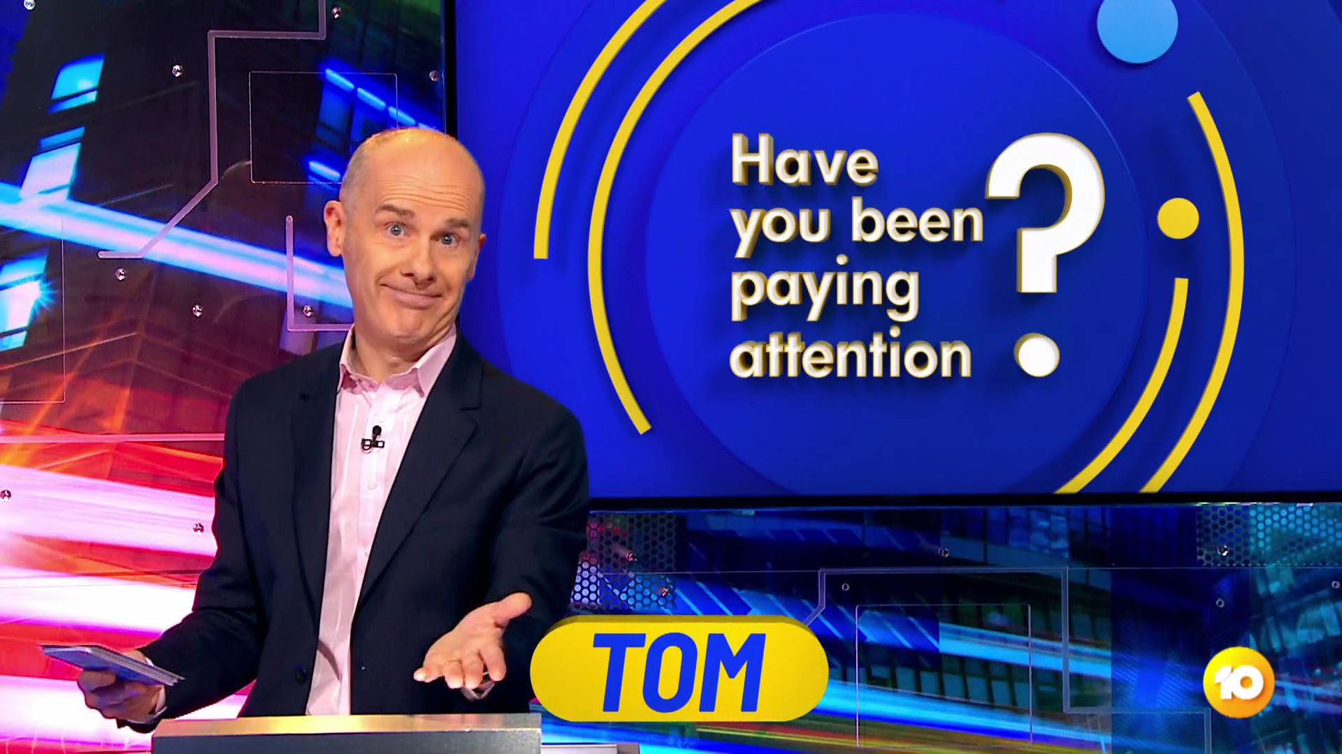 Regular contestants Sam Pang and Ed Kavalee are back for their tenth round of sucker punches to the unwavering one and only Quizmaster Tom Gleisner, who returns with topical questions from the world of celebrity, sport, international affairs and the perfectly timed federal election.
