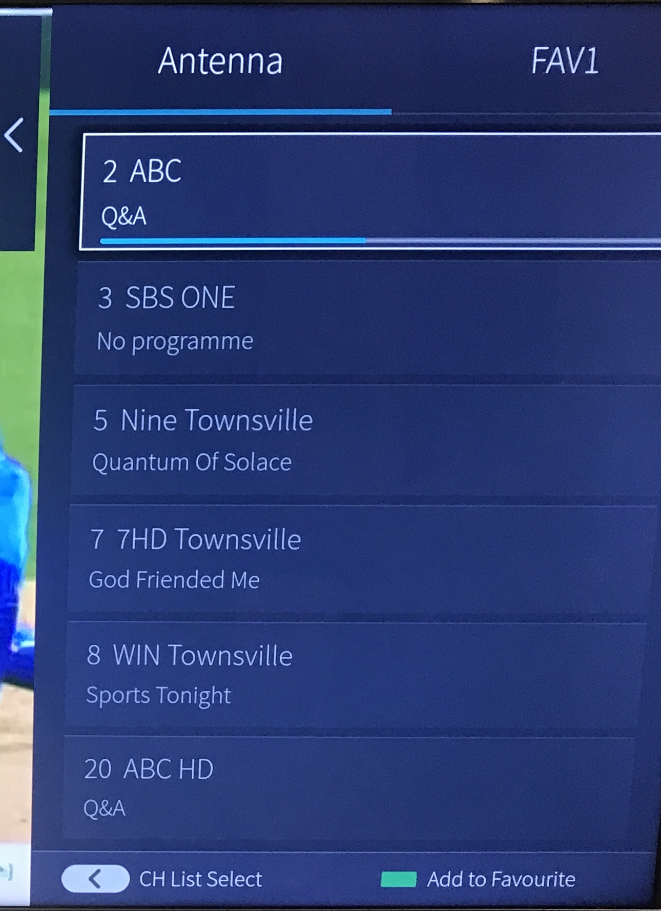 I was fiddling with the settings on my TV before. The closest I can come is to set a “favourites” list, which then allows you to use your own channel numbers, the only thing is it doesn’t let you skip a number, ever single number has to be occupied. So I can’t just have ABC HD on 2, and 9HD on 9, while everything else stays the same, I have to have something occupying 1,2,3,4,5,6,7,8,9,10,11,12, etc. which is annoying