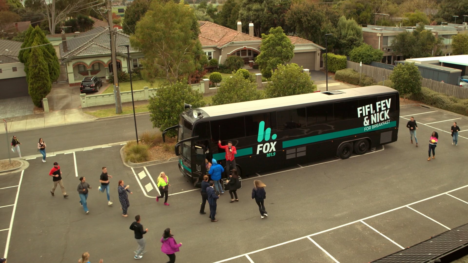 The commercial was filmed across multiple locations in Melbourne and aims to reinforce The Fox’s Fifi, Fev & Nick as the city’s no. 1 FM Breakfast show. The soundtrack to the campaign is the ARIA-nominated dance track People Happy by up-and-coming Aussie producers KLP and Stace Cadet.