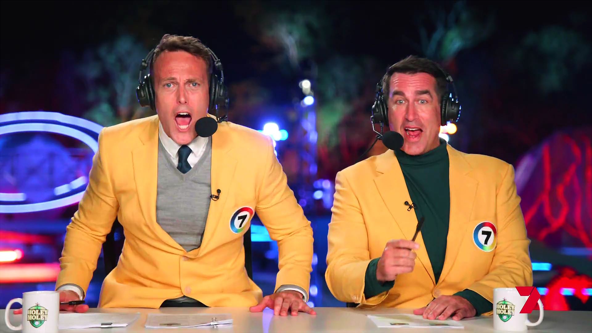 They’re just trying to emulate the American version of the show in which the hosts wear similar baby poo yellow, vintage ABC America blazers that are supposed to evoke the style and era of sports commentators Howard Cossell and Jim McKay.