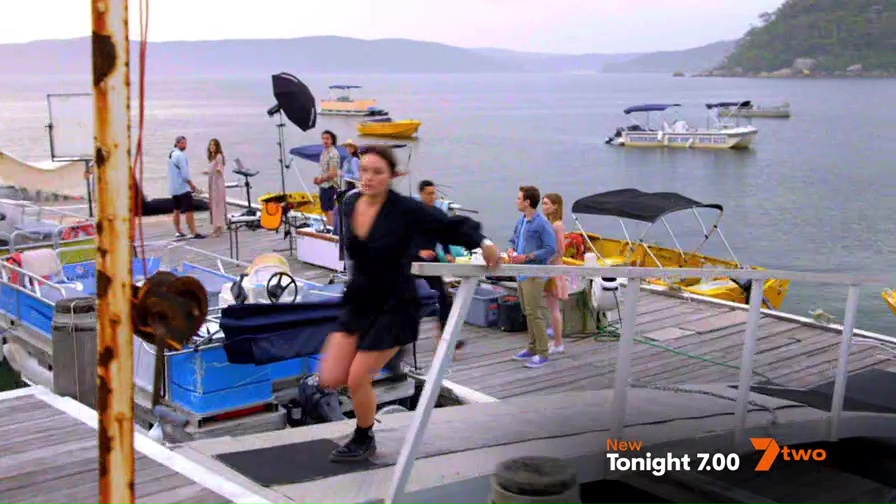 Local residents gather with bated breath to watch forensics, water police and new cop, Cash Newman (Nicholas Cartwright), investigate a body that has washed up in Summer Bay.