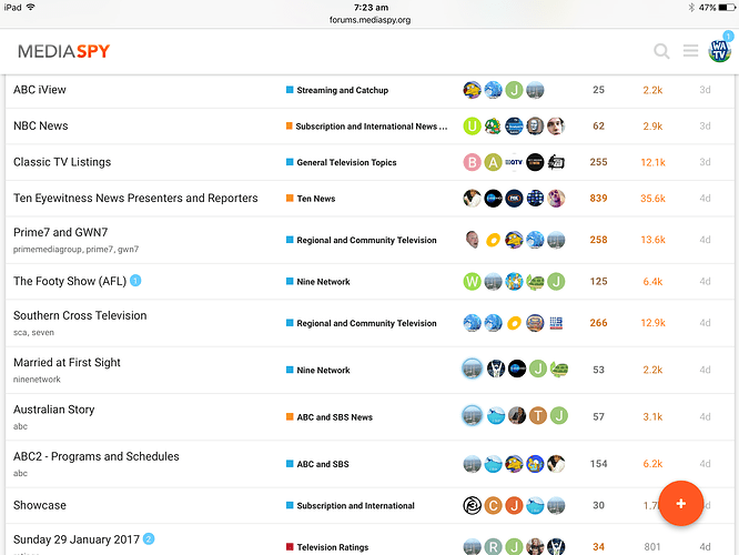 Notice the search function near the top right of the screen? Type in Seven News content and appearances, click on the magnifying glass symbol and the thread should appear on or near the top of search results. Click on the thread title and you are there. If necessary, bookmark content and appearance thread so next time you know where to visit.