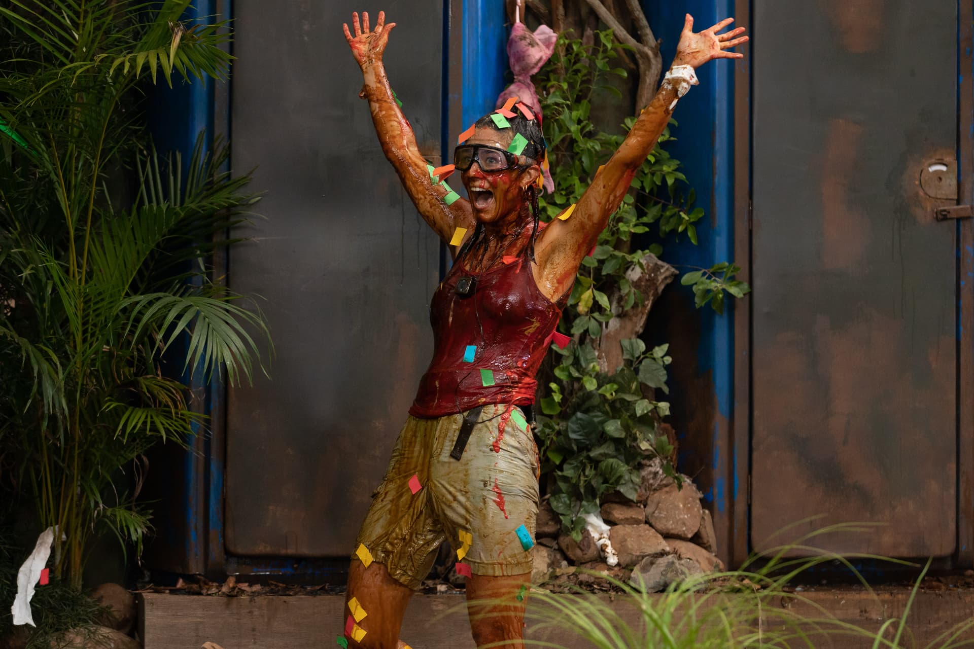 Aesha returned to camp a poo covered rock star, having won an impressive 13 stars in the trial. Unfortunately, KAK’s lack of participation meant that the camp only got six and a half stars worth of springbok and lentils for dinner.