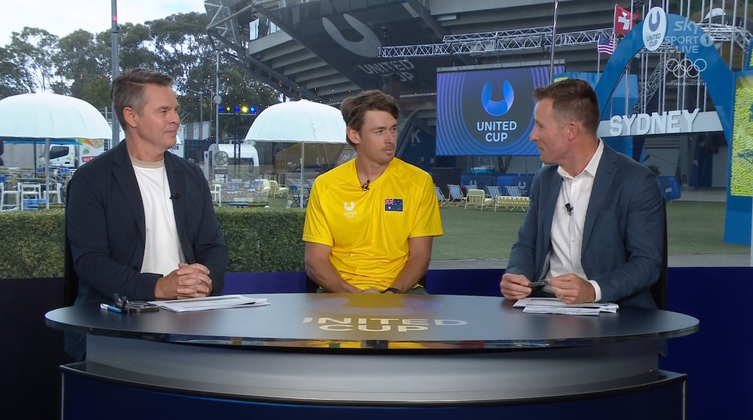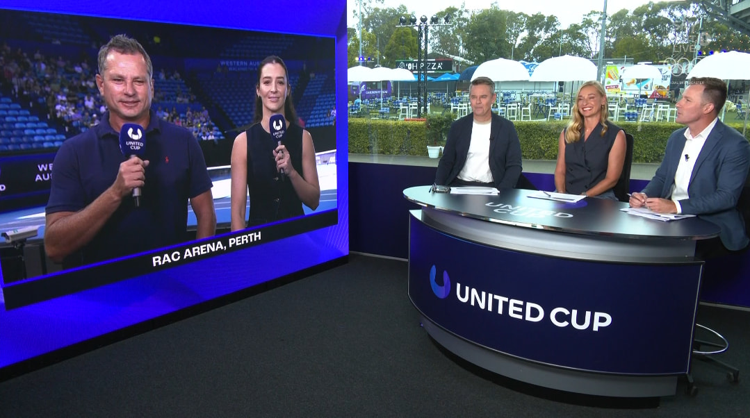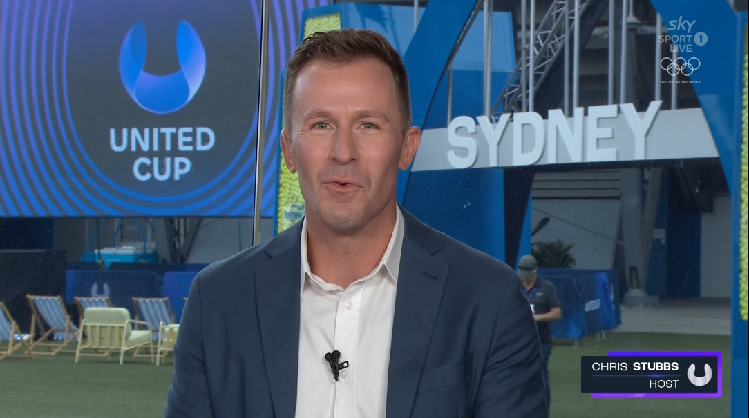 United Cup via Sky Sport NZ. World feed anchored out of Sydney with Chris Stubbs, along with Todd Woodbridge and Barbara Schett.