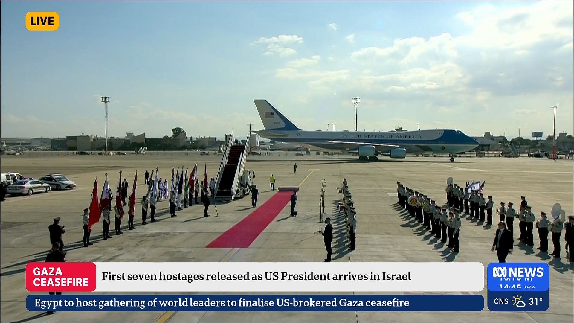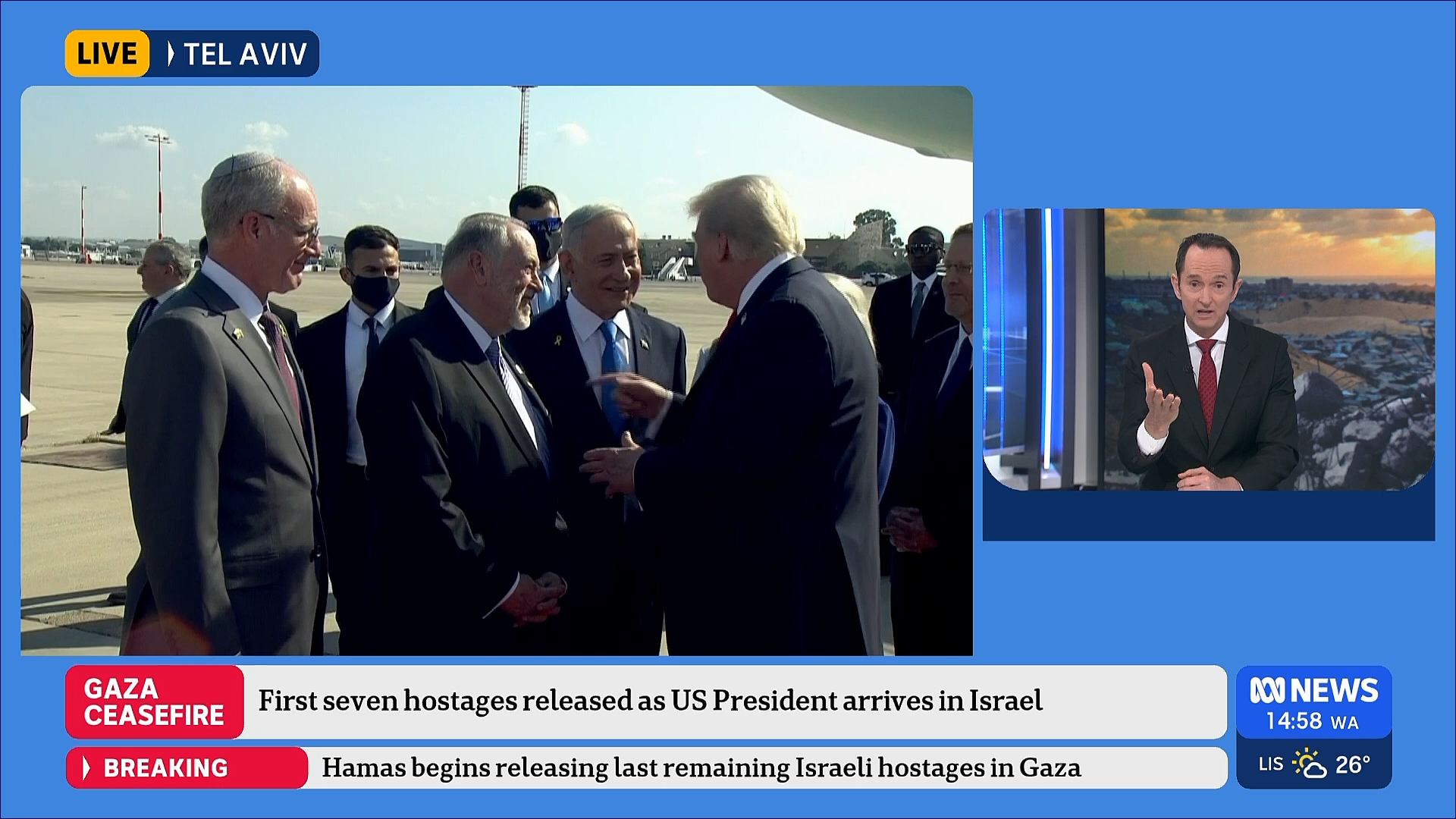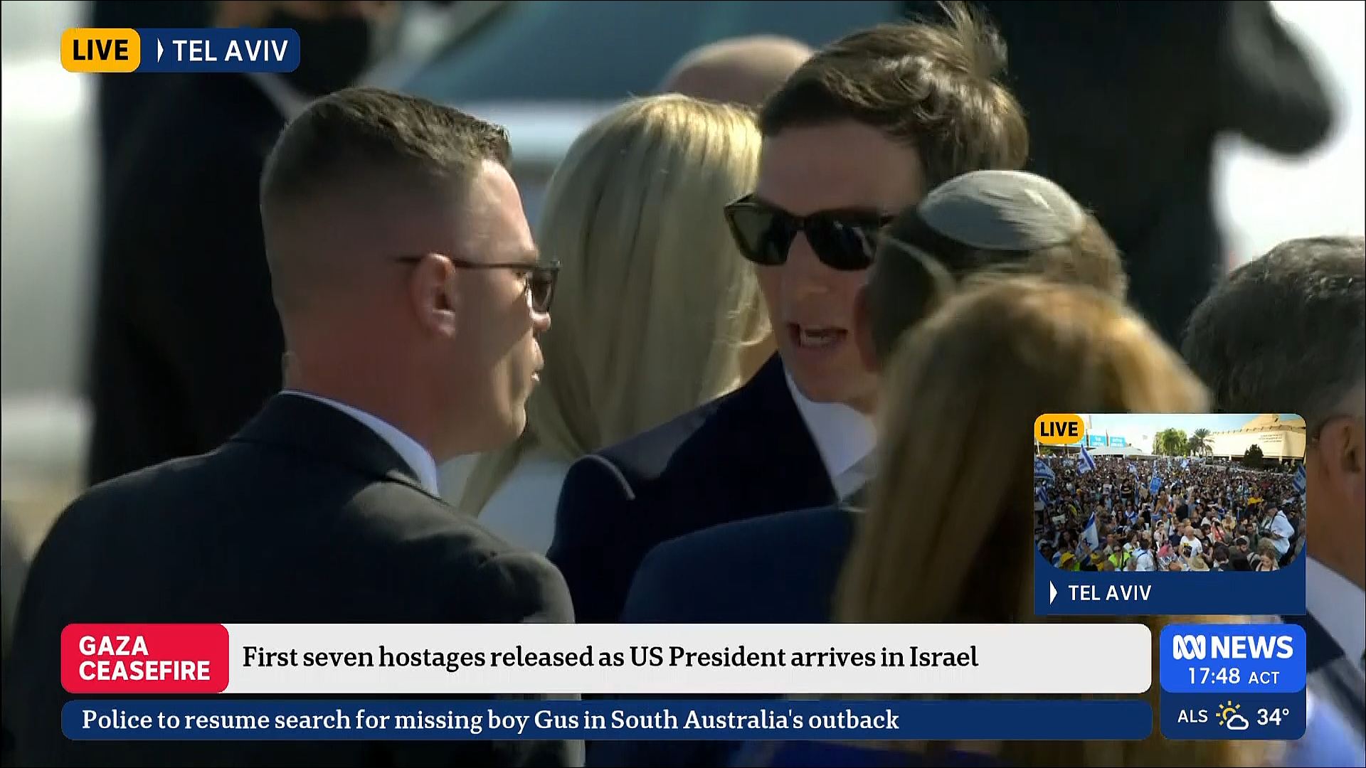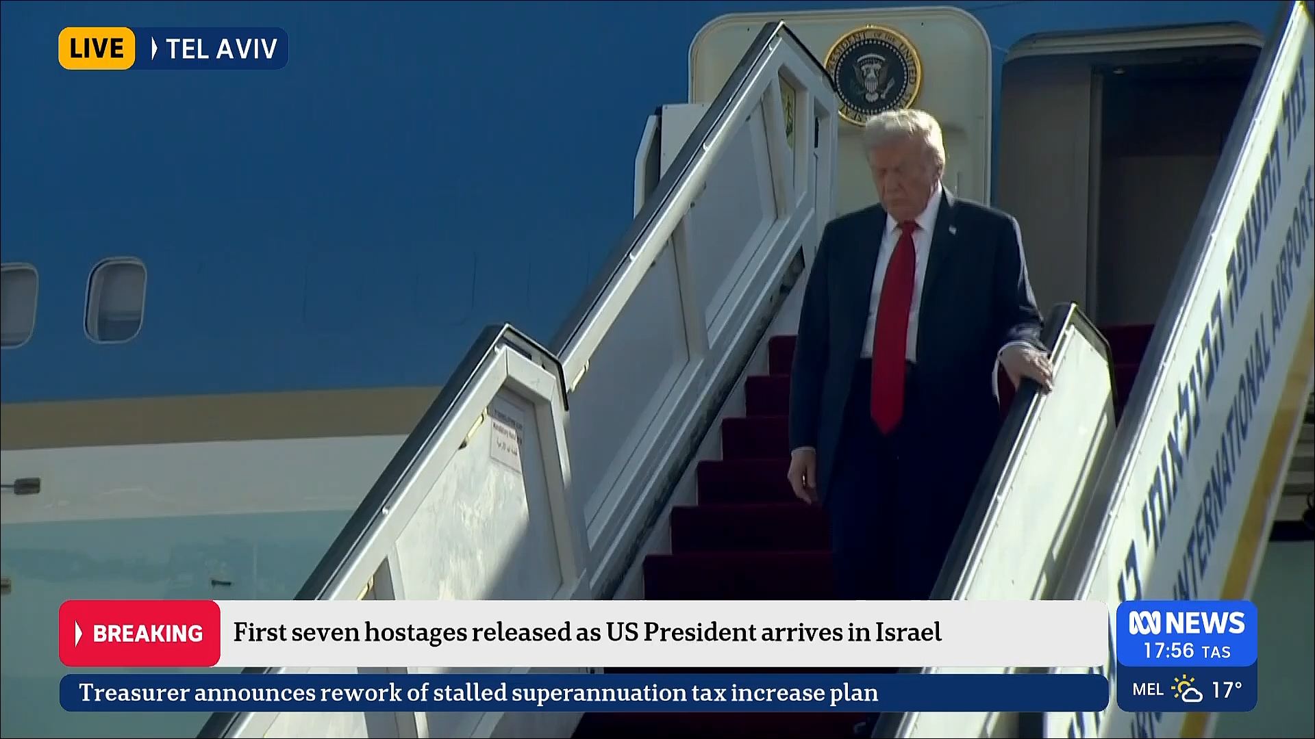 ABC News has rolling coverage of events from the Middle East with the expected release of hostages and Donald Trump’s visit.