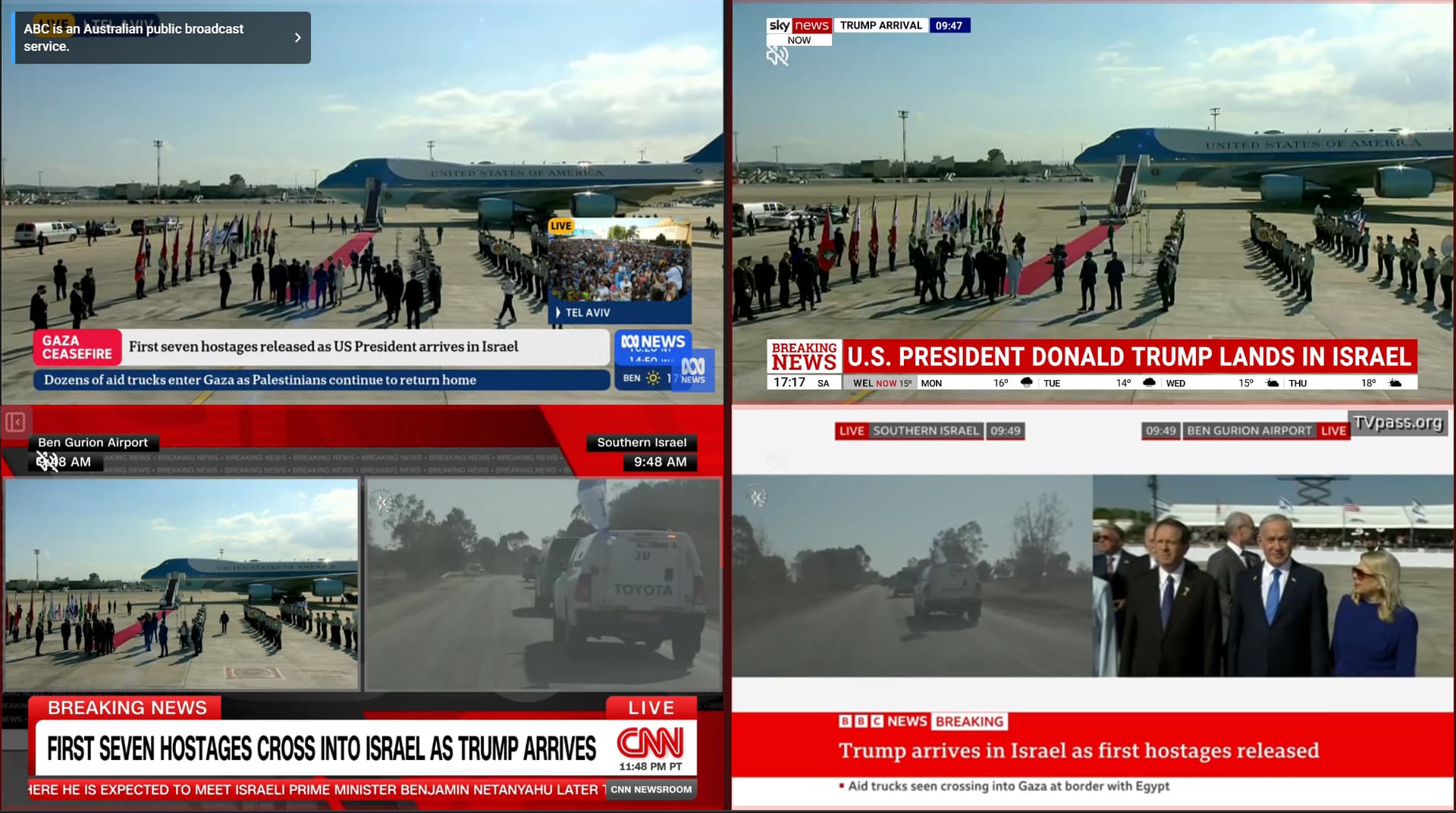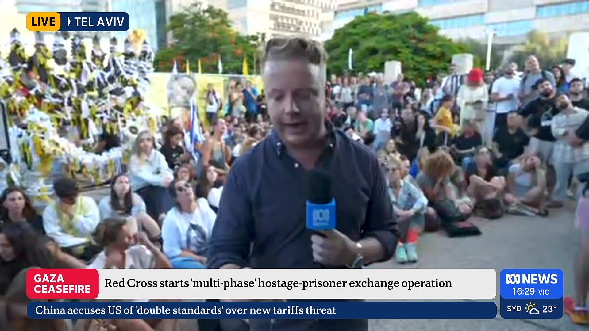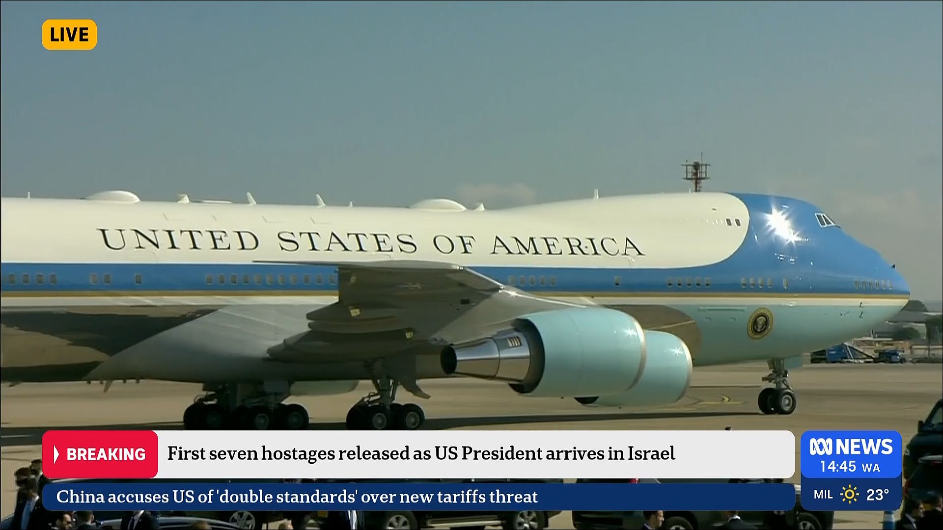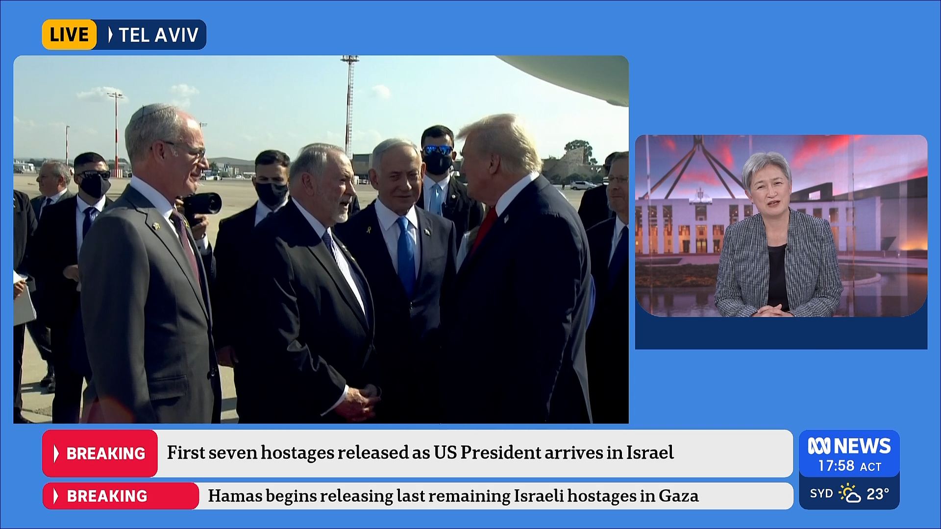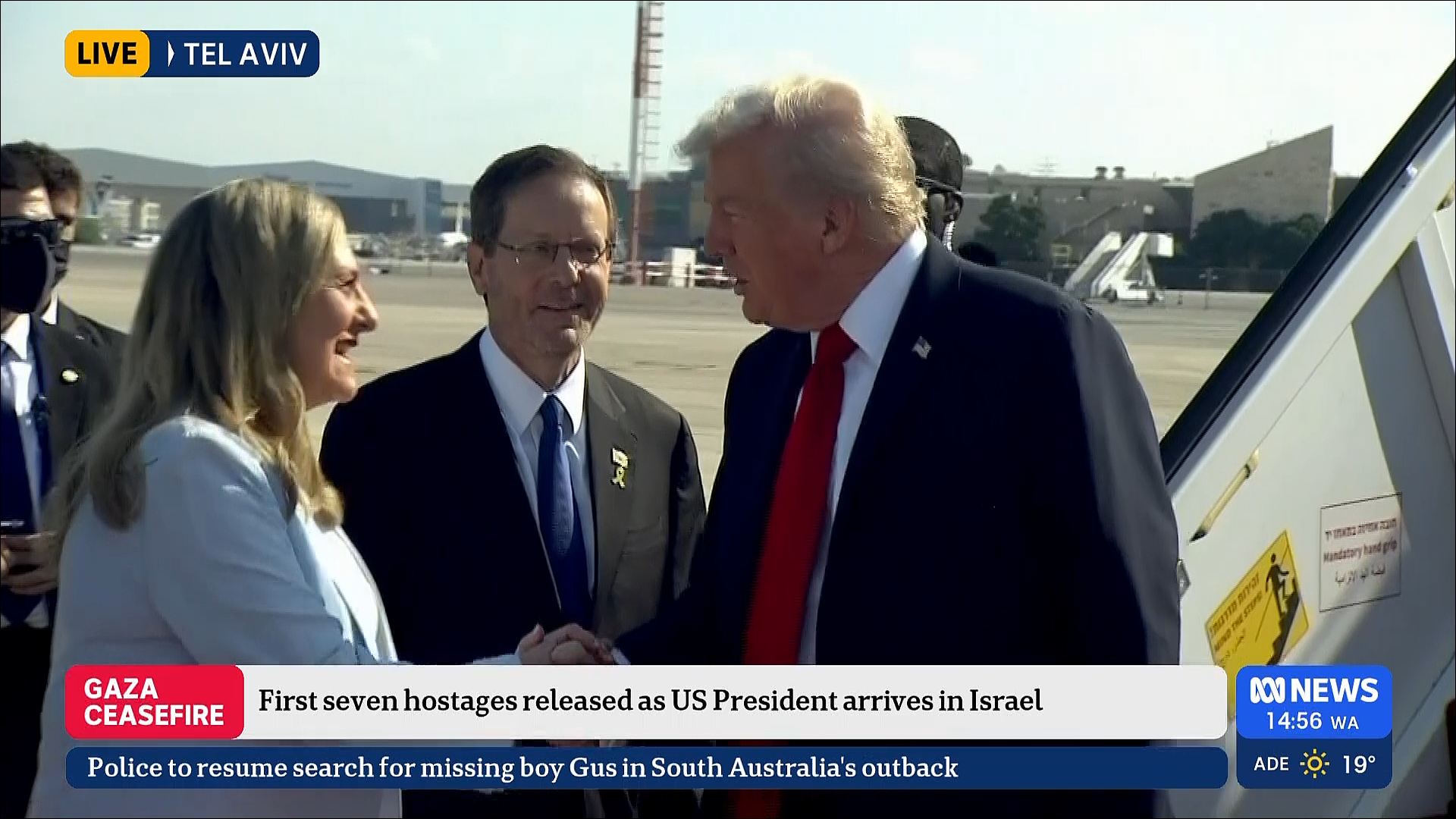 ABC News has rolling coverage of events from the Middle East with the expected release of hostages and Donald Trump’s visit.