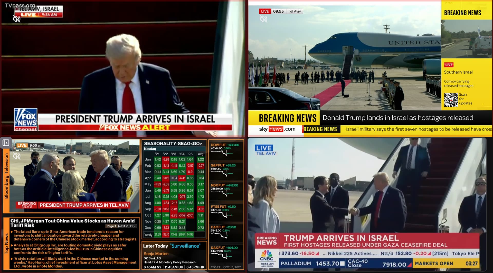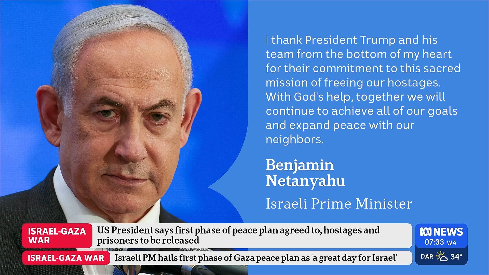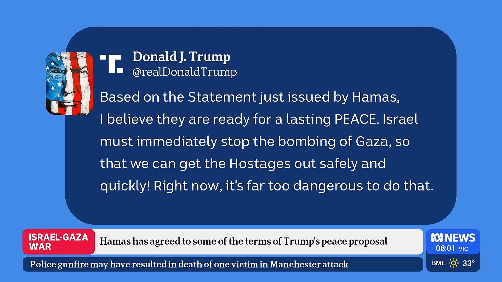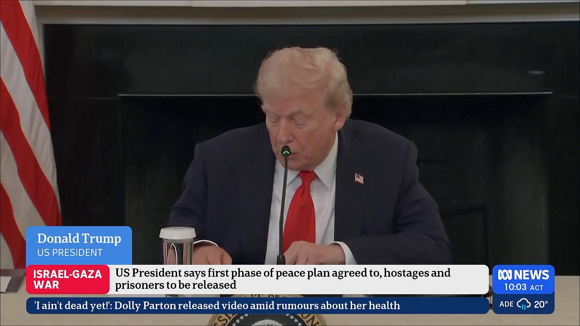 ABC News has rolling coverage of events from the Middle East with the expected release of hostages and Donald Trump’s visit.