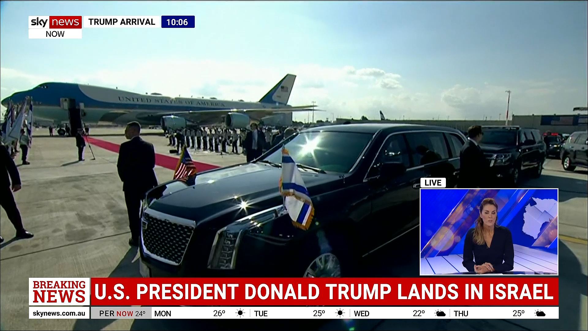 Probably WA will do that too, even though by the time 9News Late begins there, Trump will have left Israel.