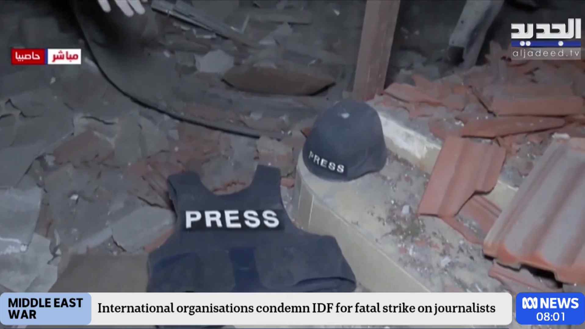 Three journalists killed after a media compound in Southern Lebanon was hit by an Israeli airstrike. Lebanon calls it a war crime, Israel says it is investigating the incident
