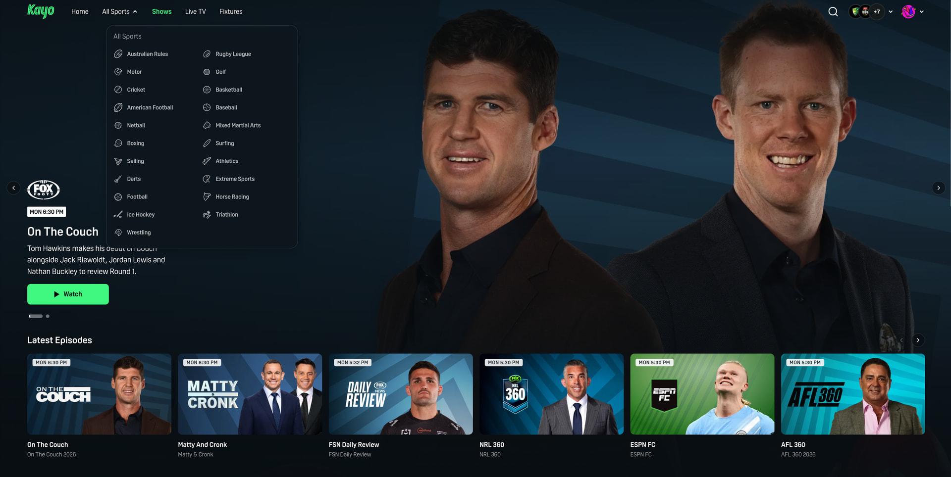 Kayo SPORTS has unveiled the next phase of its âDonât Miss a Thingâ campaign rolling out now ahead of blockbuster NRL, AFL, Formula One⢠and Supercars seasons, spotlighting Kayo SPORTS as the ultimate destination for fans audiences to watch it all, when they want and how they want.