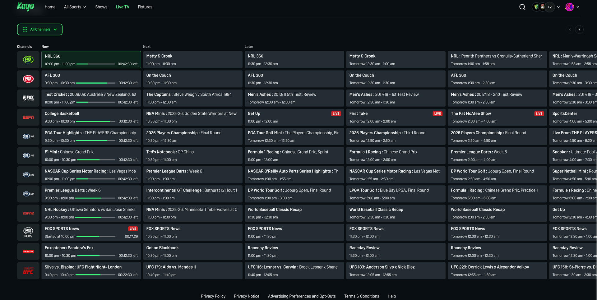 Kayo has changed its website format. There is now a tvguide too! Also the backend has change - the MPD streams URLâs have changed to DAZN backend it appears. There is no reference to âFoxtelâ in the mpdâs at all now.