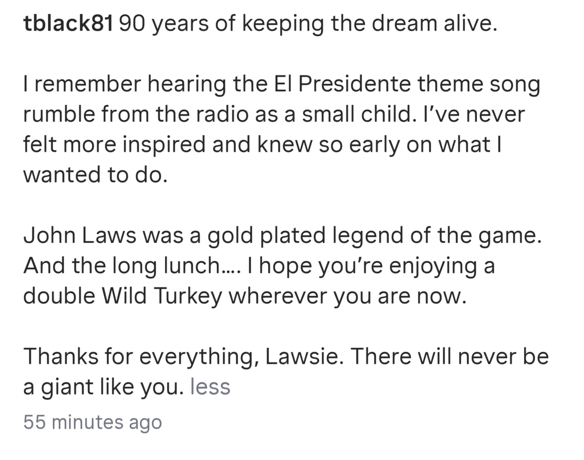 He was friends with (and admired by) a lot of radio hosts. Tim Blackwell also spoke fondly of him. They had appeared on each others show quite a few times.