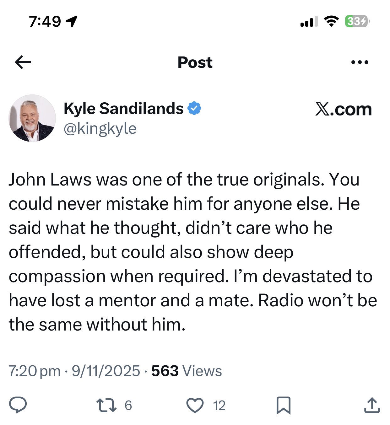 Radio legend John Laws passing will have a big impact on Kyle and also Jackie.