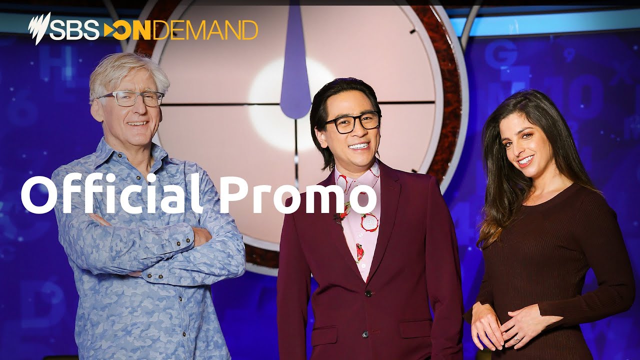 Hosted by Michael Hing, each week three celebrity contestants compete in a hilarious version of the classic show ‘Letters and Numbers’. Featuring wordsmith David Astle in Dictionary Corner offering endless nuggets of wisdom that you never knew you didn’t know! Over at the board, numbers expert Lily Serna explains mathematical techniques in a way that makes complete sense.