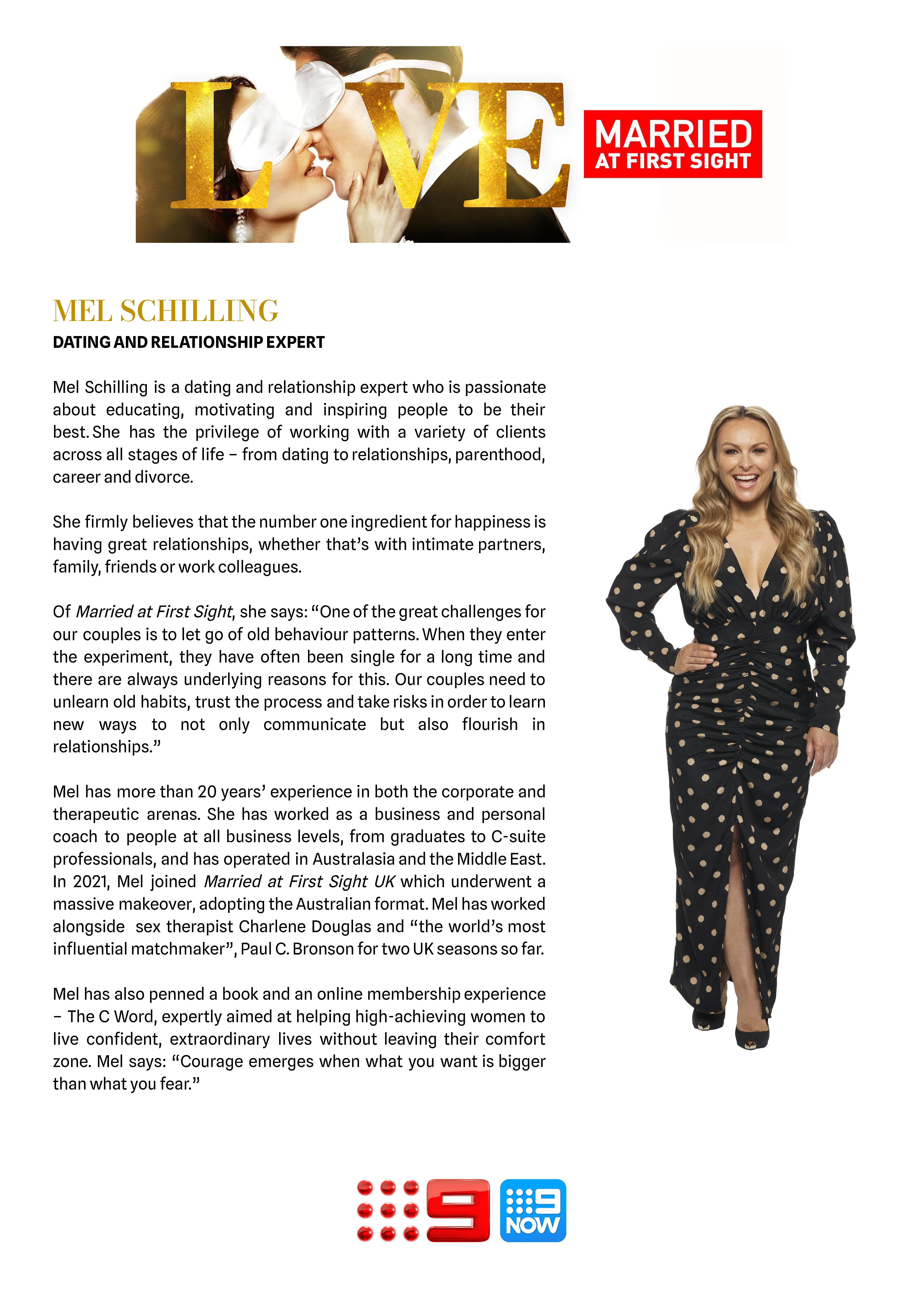 This year, in their quest to find love, 10 new brides and 10 new grooms will meet for the first time at the altar on their wedding day after being matched by relationship experts John Aiken and Mel Schilling, and clinical sexologist Alessandra Rampolla.