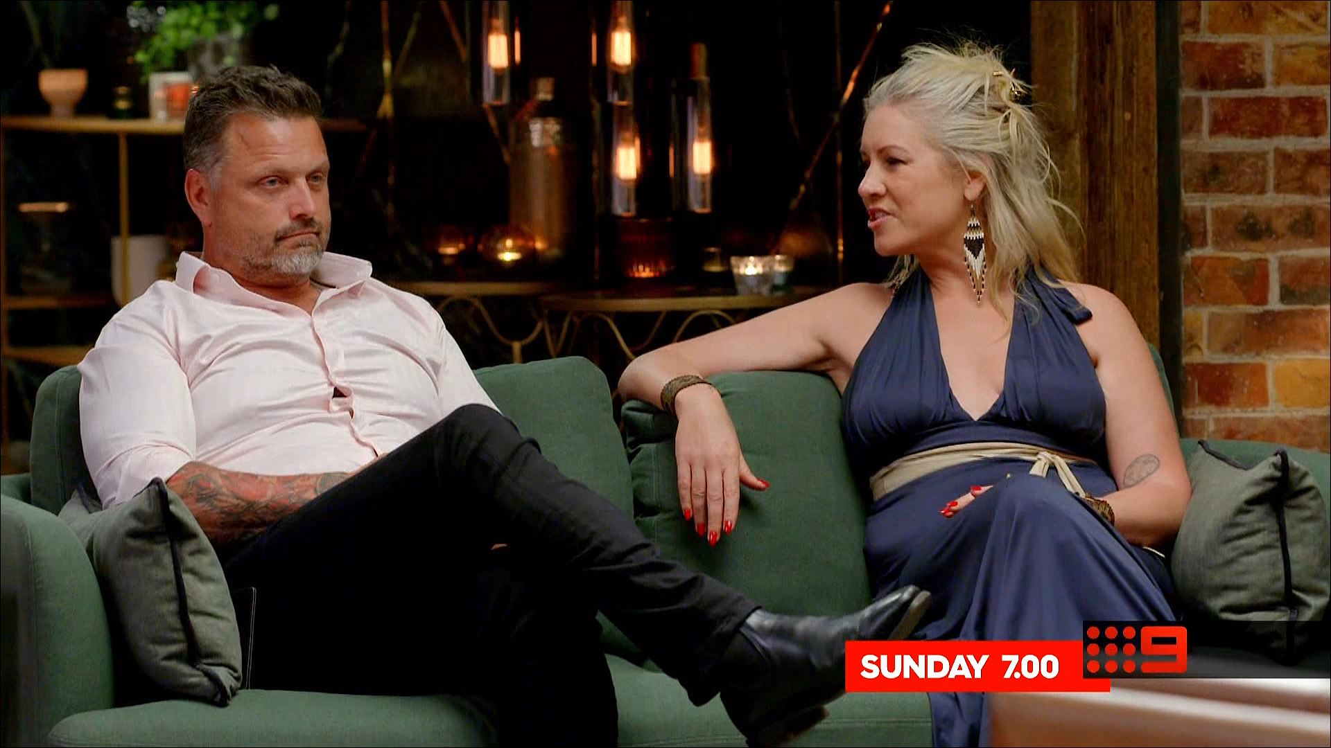 LUCINDA and TIMOTHY are first to air their grievances at the table and take their chat outside where they reach a positive conclusion, with LUCINDA admitting it is hard to stay angry with hunky TIMOTHY. He apologises for his behaviour, and they hug it out.