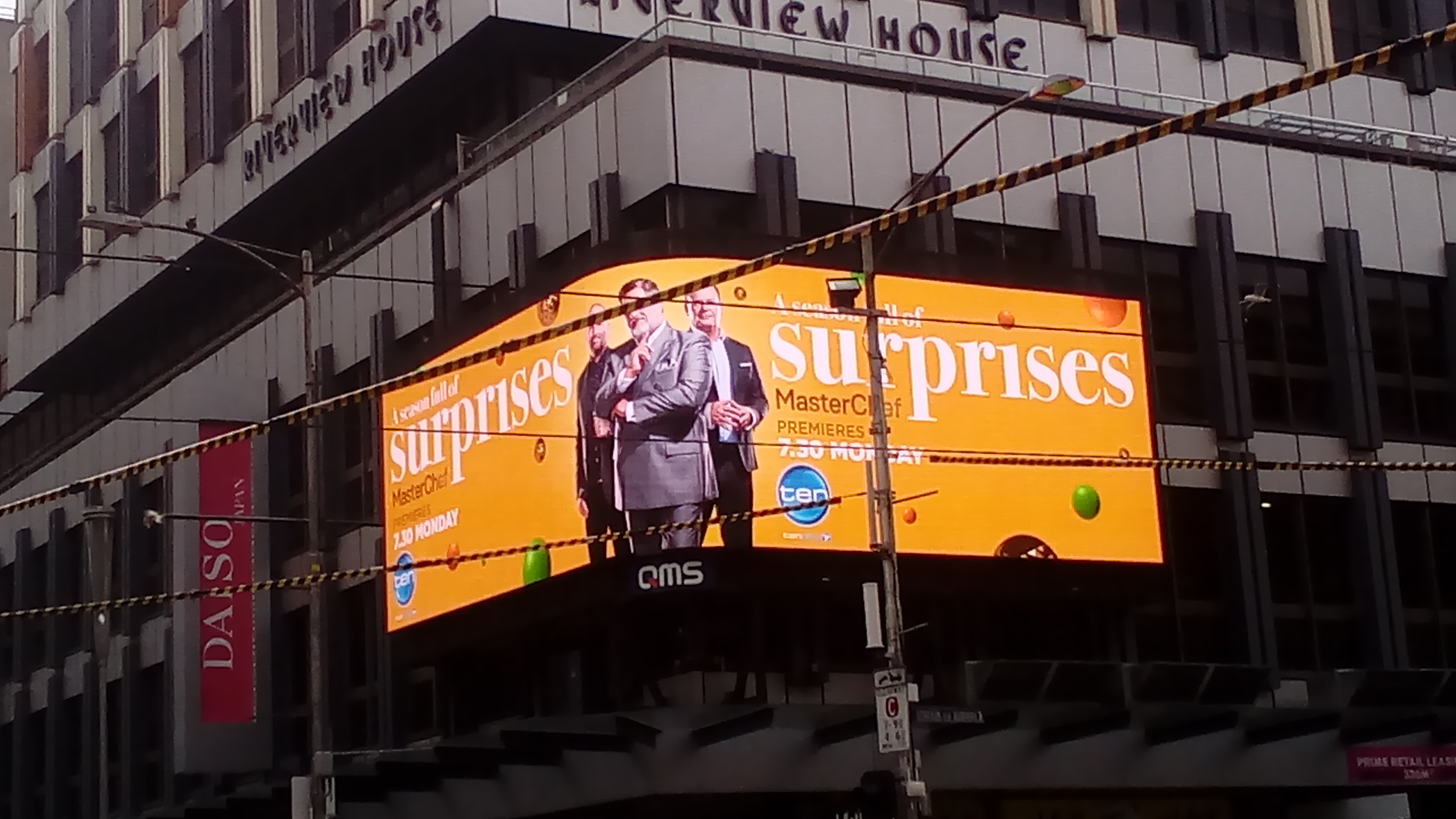 MasterChef promoted on LED billboard at the corner of Elizabeth and Flinders Streets in Melbourne city today.