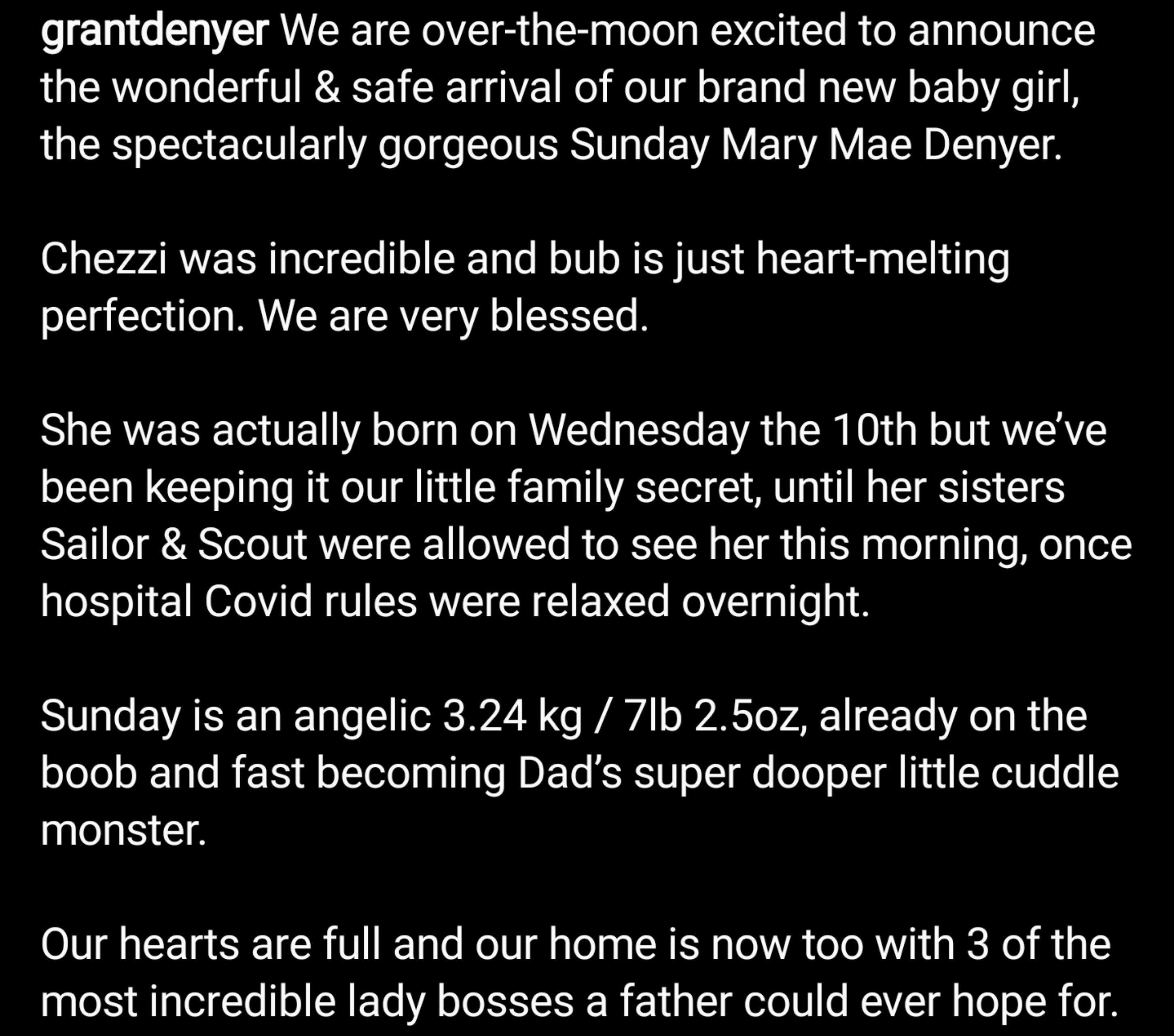 The news was missed that the baby arrived on 10 February.