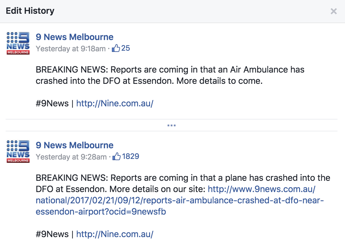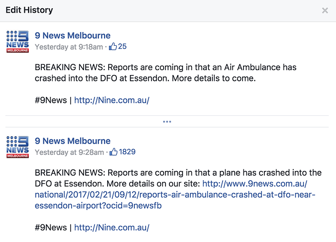 Channel 9 even had to edit their post after 10 minutes. Again, not an attack on any media outlet - because pretty much every outlet said “reports” which was taken from 3AW reporting.