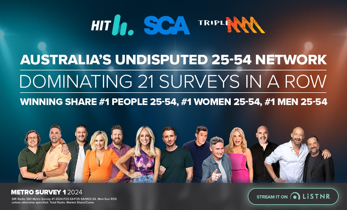 SCA Chief Content Officer, Dave Cameron, said; “Again, the powerful combination of the Hit and Triple M networks together has delivered an outstanding No.1 10+ share result nationally, with SCA continuing to also convincingly win the key buying demographic of 25-54 for a record 21 surveys in a row.