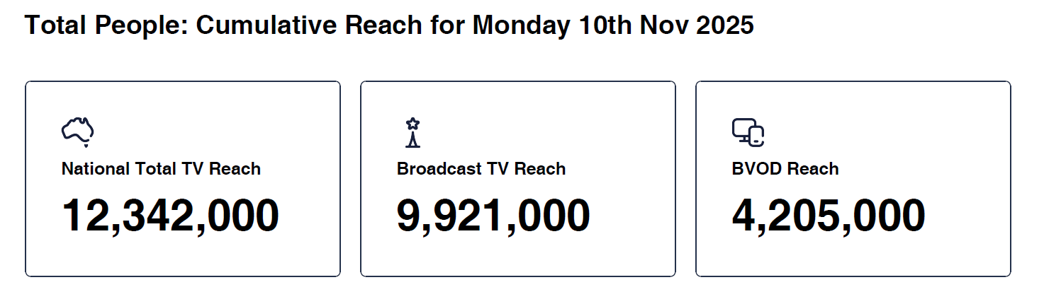 Data © OzTAM Pty Limited 2025. The Data may not be reproduced, published or communicated (electronically or in hard copy) in whole or in part, without the prior written consent of OzTAM.