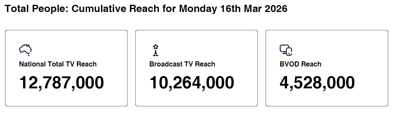 Data © OzTAM Pty Limited 2026. The Data may not be reproduced, published or communicated (electronically or in hard copy) in whole or in part, without the prior written consent of OzTAM.