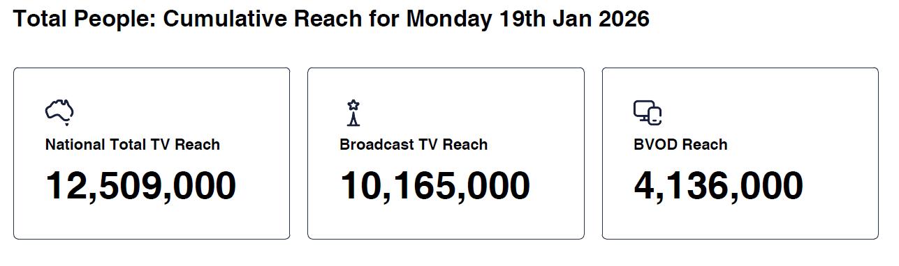 Data © OzTAM Pty Limited 2025. The Data may not be reproduced, published or communicated (electronically or in hard copy) in whole or in part, without the prior written consent of OzTAM.