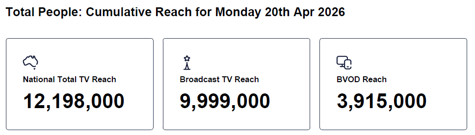 Data © OzTAM Pty Limited 2026. The Data may not be reproduced, published or communicated (electronically or in hard copy) in whole or in part, without the prior written consent of OzTAM.