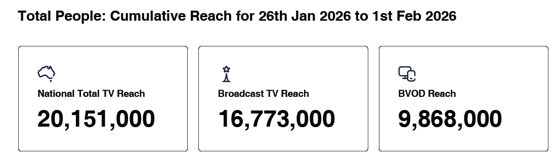 Data © OzTAM Pty Limited 2026. The Data may not be reproduced, published or communicated (electronically or in hard copy) in whole or in part, without the prior written consent of OzTAM.