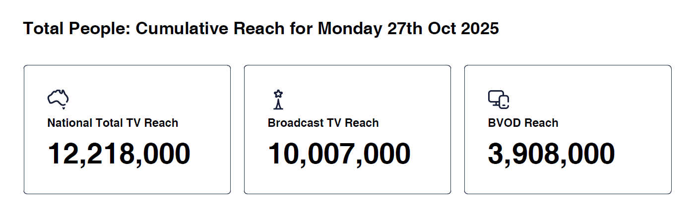 Today was the breakfast program of choice in Sydney and Melbourne for Total People. It registered a Total TV Reach Audience of 813,000, a Total TV National Audience of 327,000 (up 4.8% year-on-year) and a BVOD Audience of 50,000 (up 35.1% year-on-year).