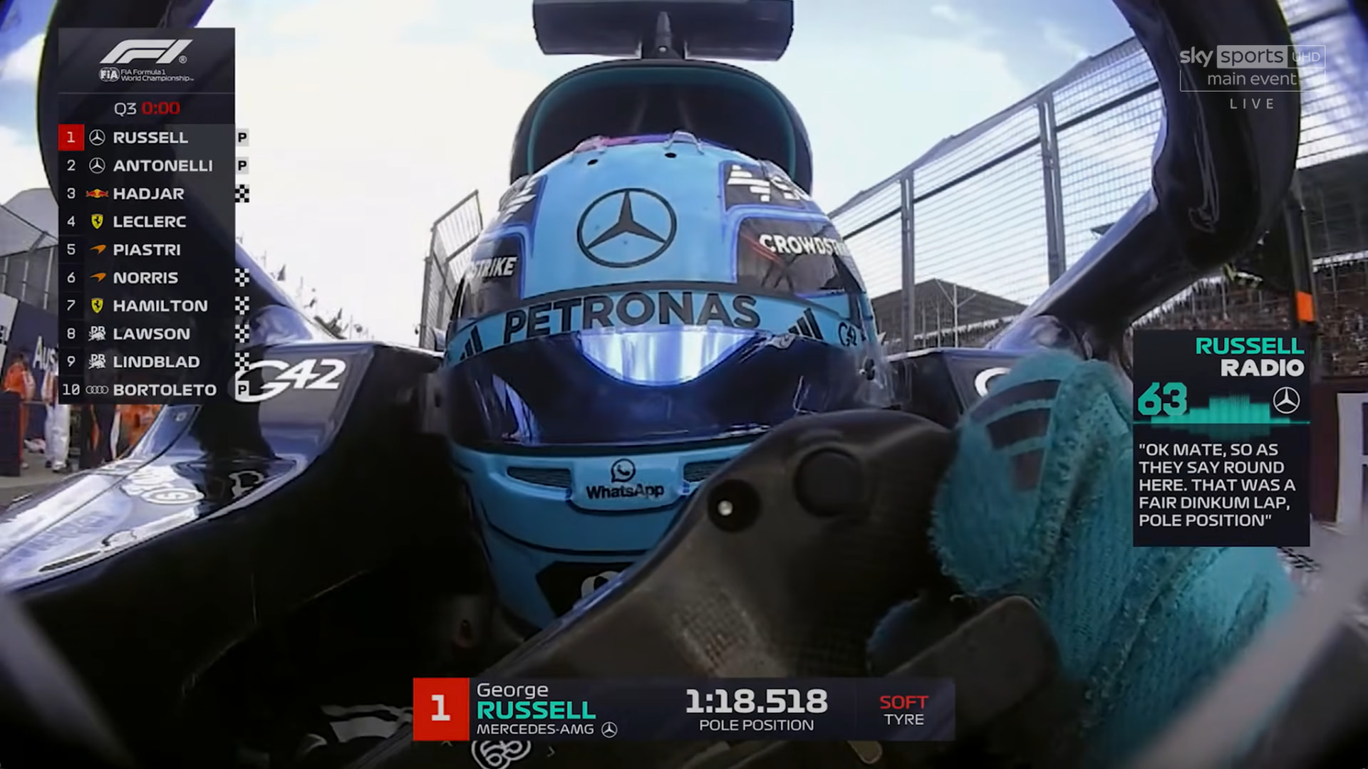 Shittest result. Can’t stand George Russell. Probably the most cringiest driver on the grid. He’s such a douchebag. Would’ve preferred virtually anyone else on pole: even Norris.