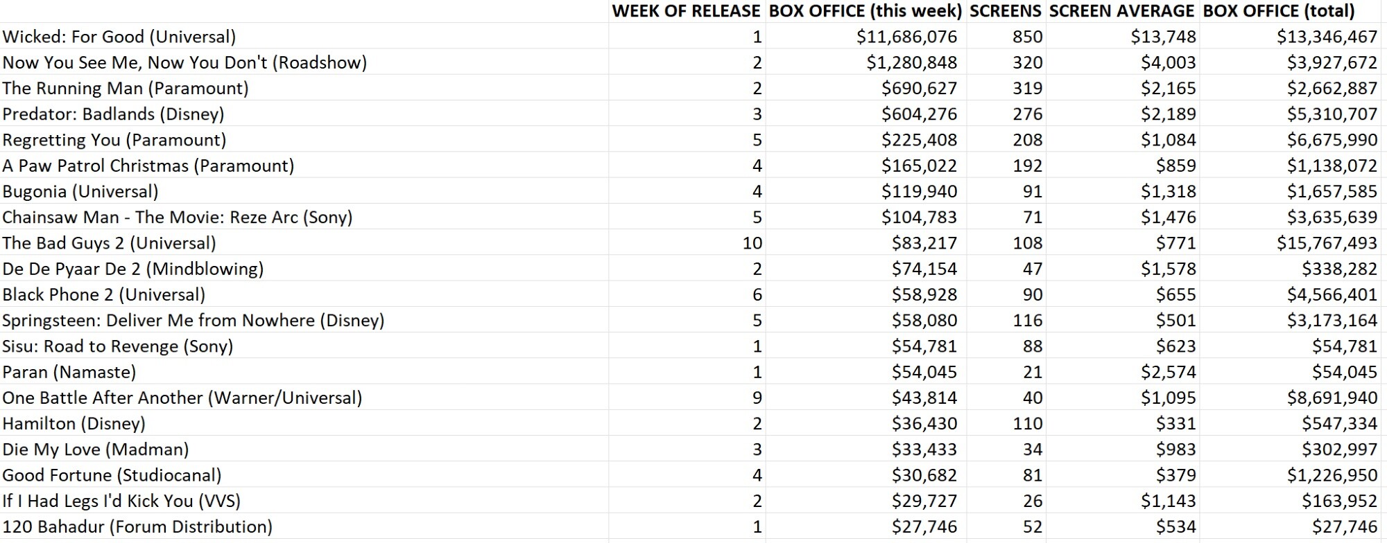 UPDATE: Australian box office figures from Numero (via Filmink)