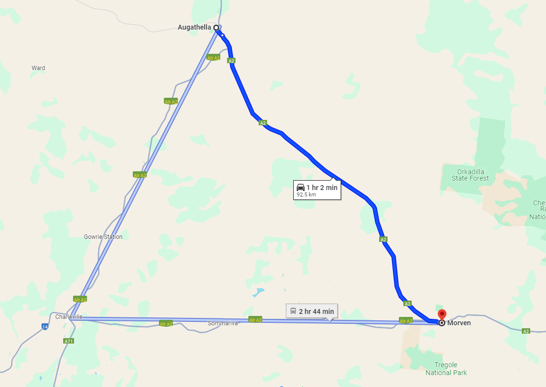 On top of Charlevile, they claim to be transmitting on 87.8 FM in Augathella and Morven in this Facebook post. All 3 towns are about an hour away from each other in a triangle (map below). This is probably why someone complained to the ACMA.