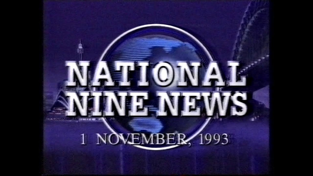 National Nine News Sydney with the late Brian Henderson, Ken Sutcliffe and Alan Wilkie - Monday 13/9/1993: