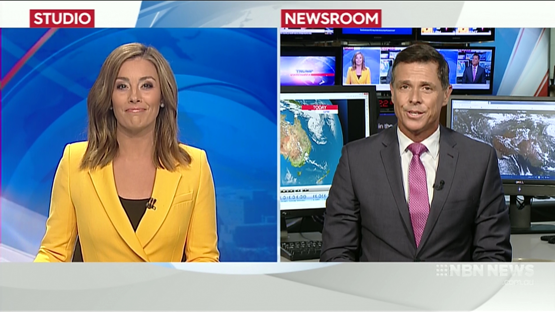 Reporters with references to “Nine News can reveal…” and holding Nine mic flags when on screen and then a dubbed over “NBN News” reporter sign off.