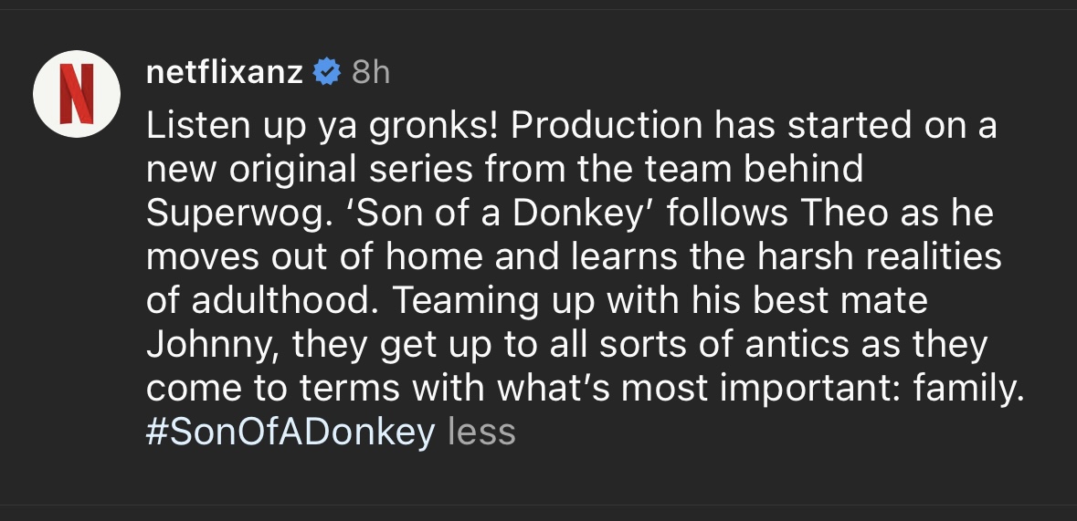 Production has started on a new Netflix ANZ series from Superwog called âSon of a Donkeyâ.