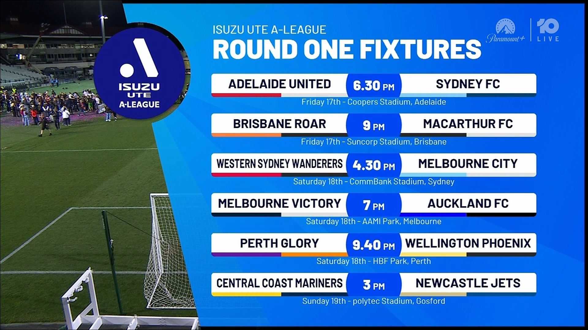 Not sure about the decision to more or less basically drop the 10 branding completely on mics and other venue advertising. Might help Paramount but doesn’t exactly help reinforce that some of the aleague is available free on 10.