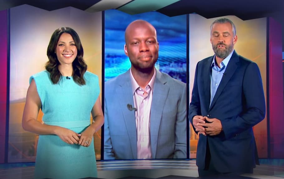 Tara, Bruce and Simon talking about the Football action.