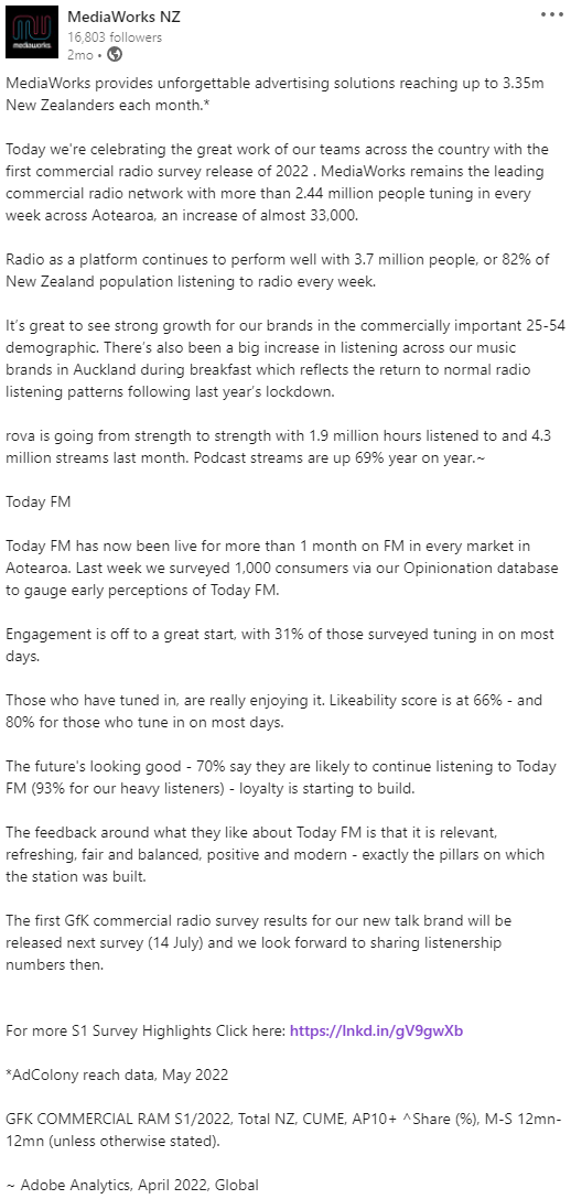 I did see in another post online there was something about Today FMâs likeability according to recent research but I canât remember where I saw it⌠dammit!