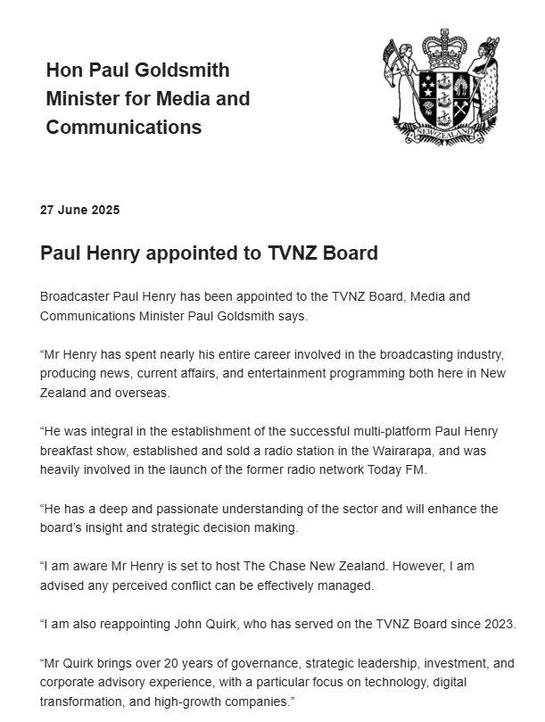 He was pretty scathing about traditional TV news when the Newshub closure was announced and that included TVNZ. Will make interactions with Jodie O’Donnell interesting after she highlighted how well 6pm news was doing last week.