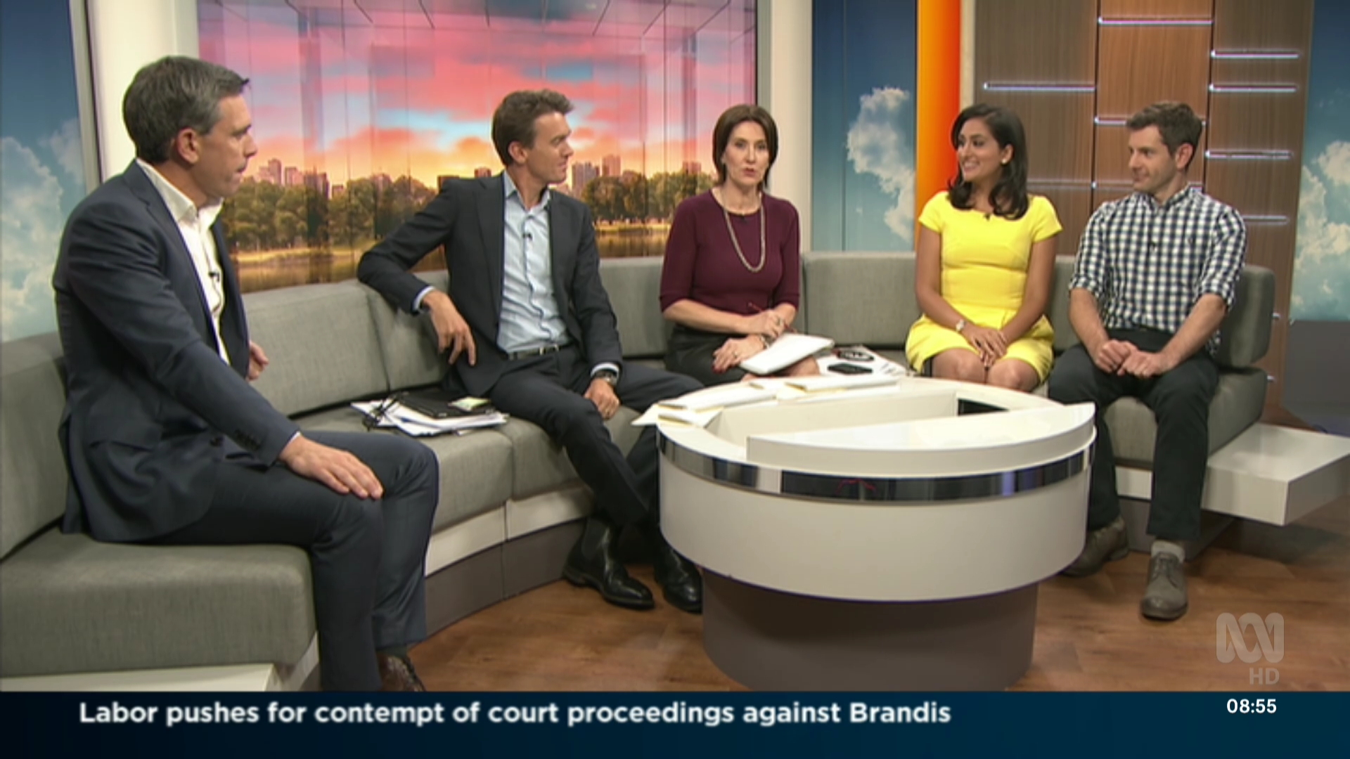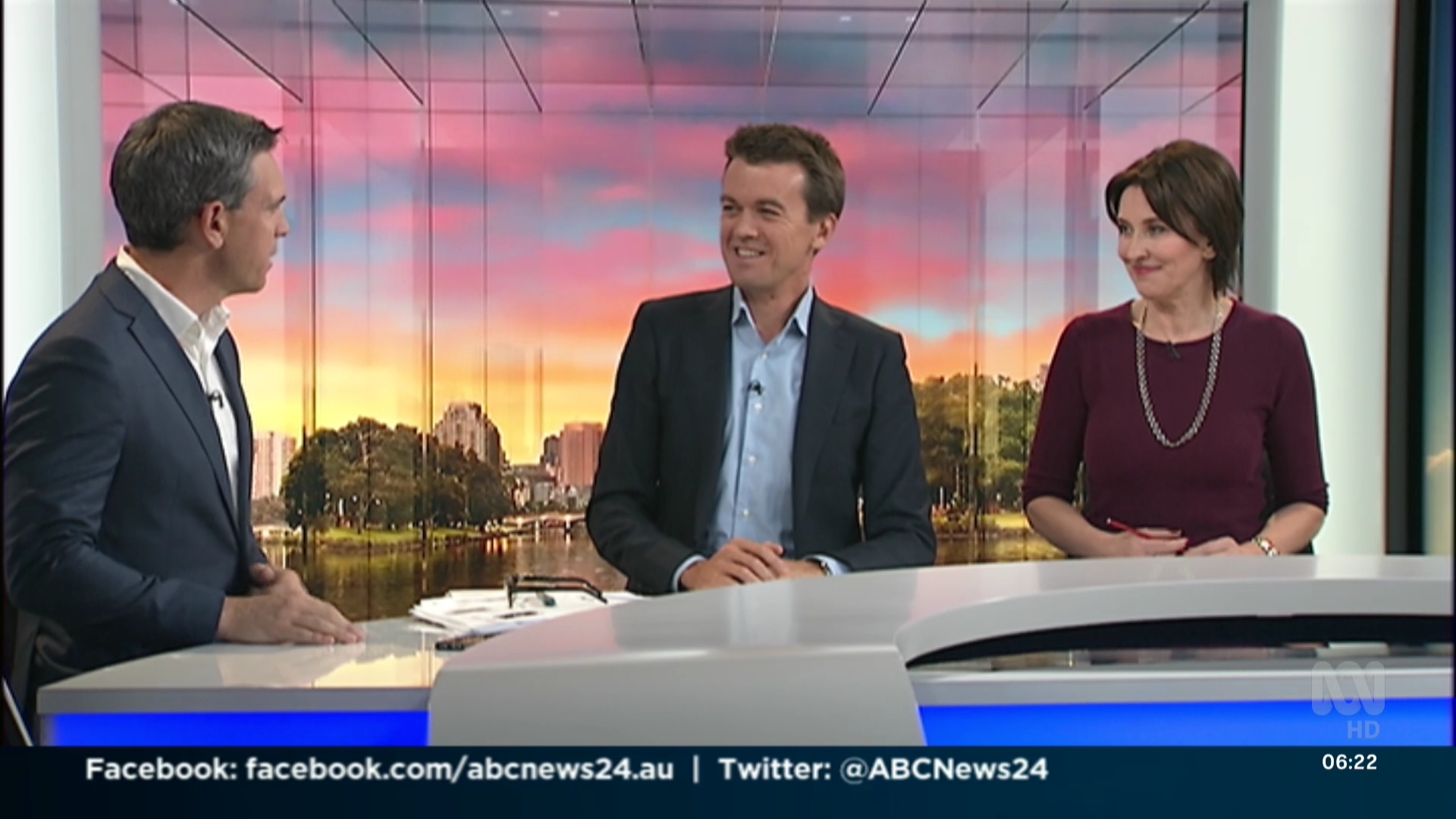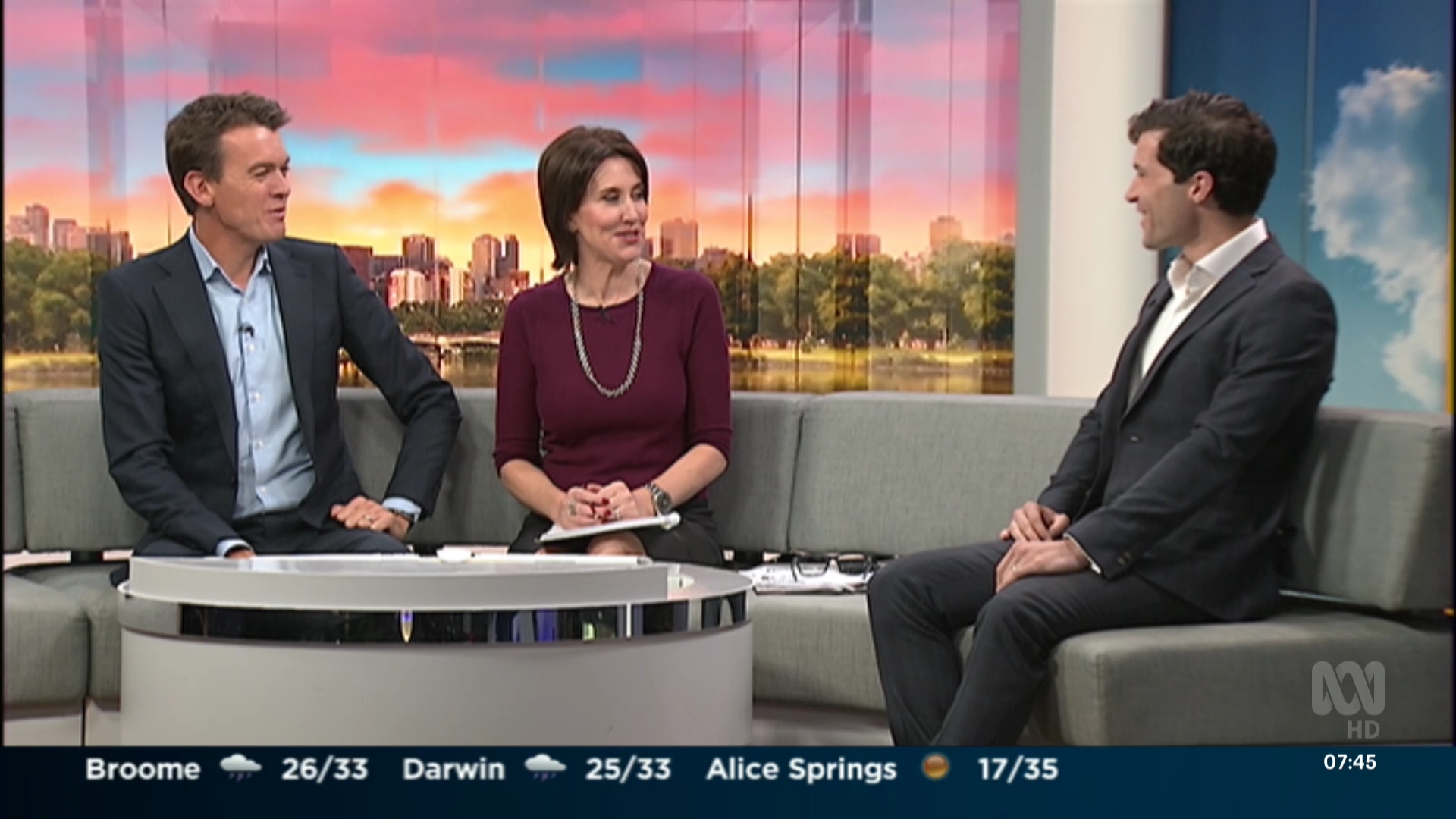 Improve the show. A new desk, some new lighting. Replace the cheap looking printed graphic panel walls of clouds with some video elements. Some vertical plasma areas to display info. A social media wall or nook as ABC is so desperately trying to work out how to get younger people to watch. Some digital presentation improvements and technologies on the set to tie Guthries huge digital content push into the finished product on air. These types