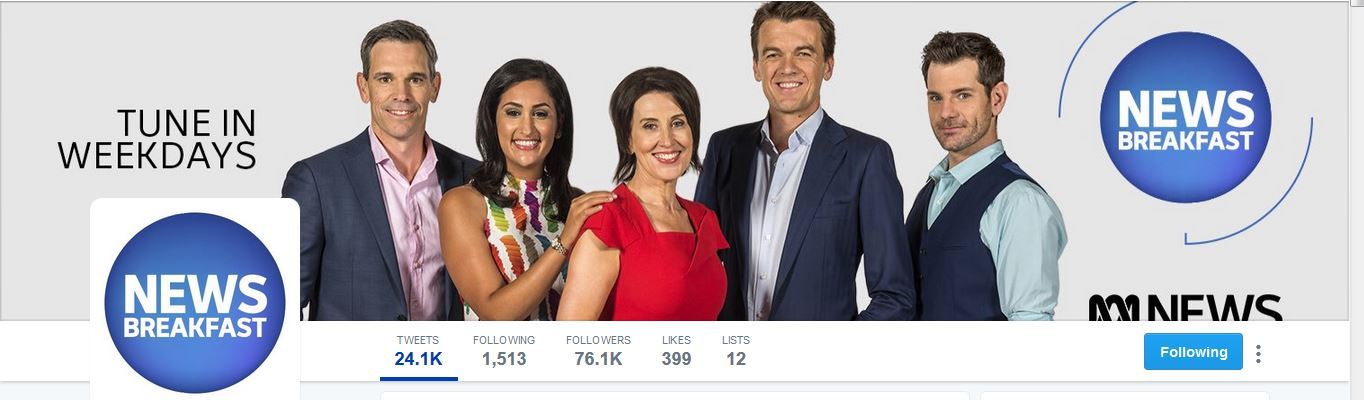 Otherwise, I’d probably expect very similar graphics to the rest of ABC News including “(ABC Logo) NEWS BREAKFAST” as the logo. Music wise, perhaps a version of the ABC News theme which has a slightly lighter sound compared to the main news theme, but one which is serious enough that wouldn’t sound too “happy” when you have things like the crisis in Syria leading the headlines.